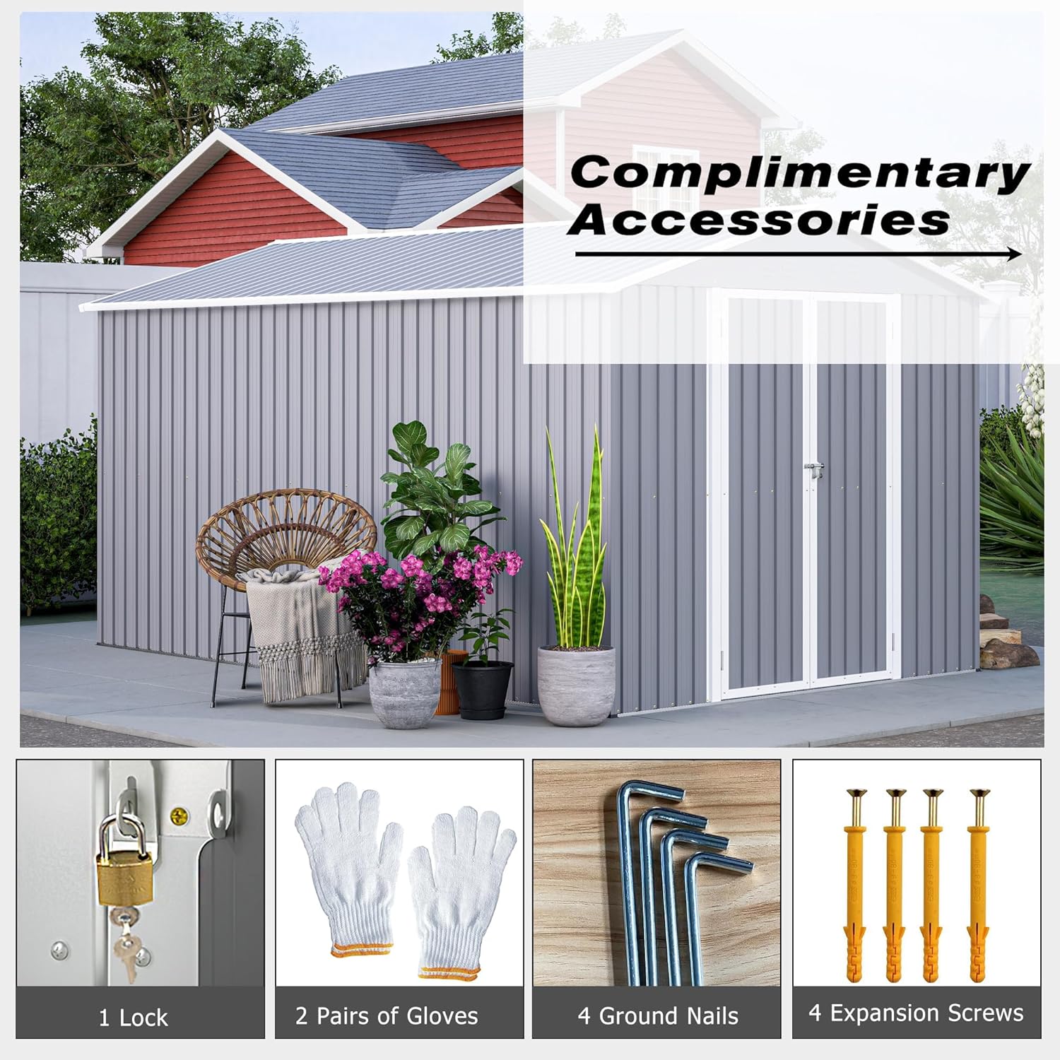- [Security Accessories Included] Comes with two padlocks, tethered ground anchors for stability, and installation gloves. Assembly guidelines provided via video tutorial