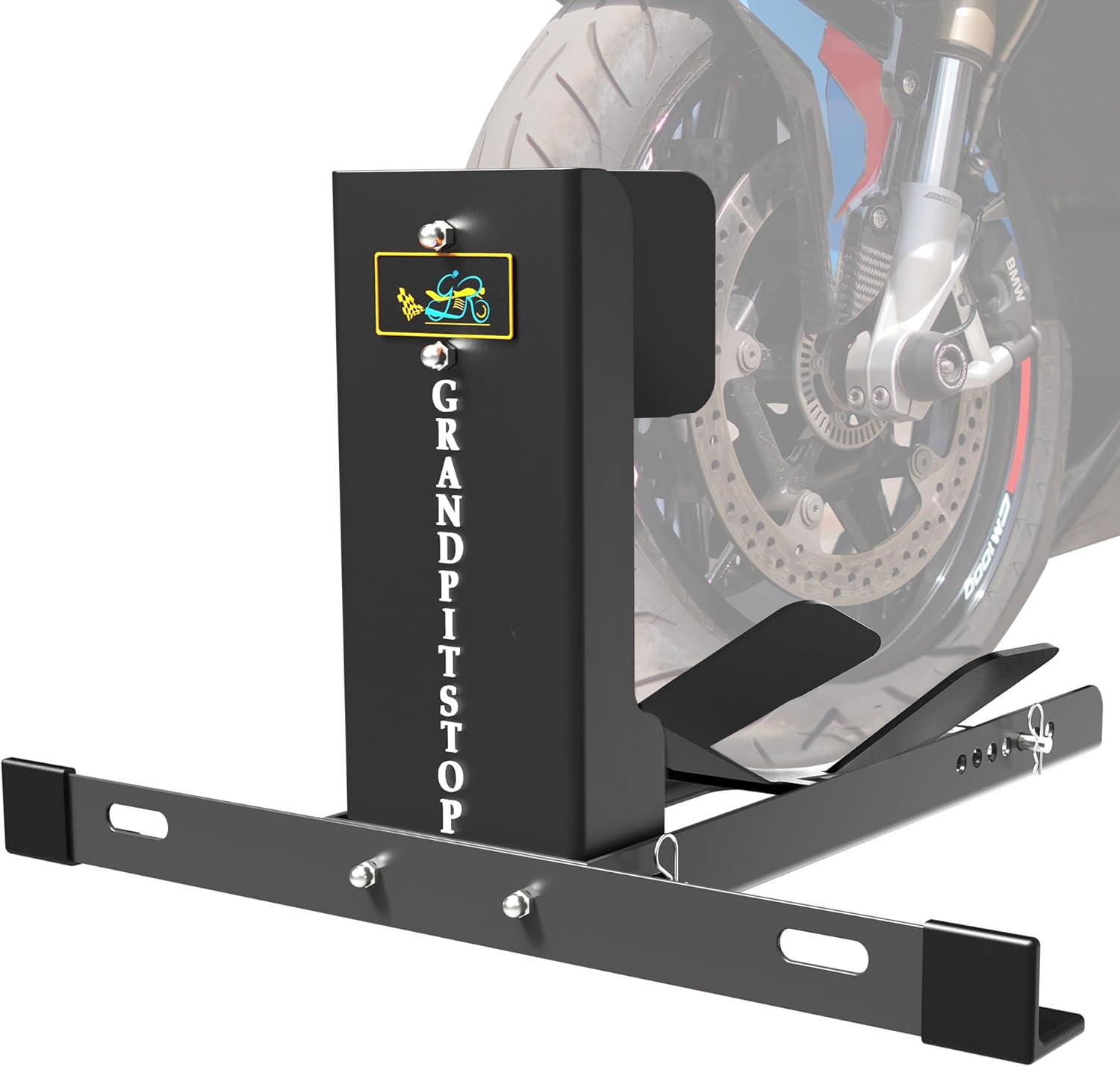 - Versatile: GRAND PITSTOP Universal Wheel Chock Stand will give your bike a secure and standing forward hold on trailer, Garage or House to store your Motorcycle.