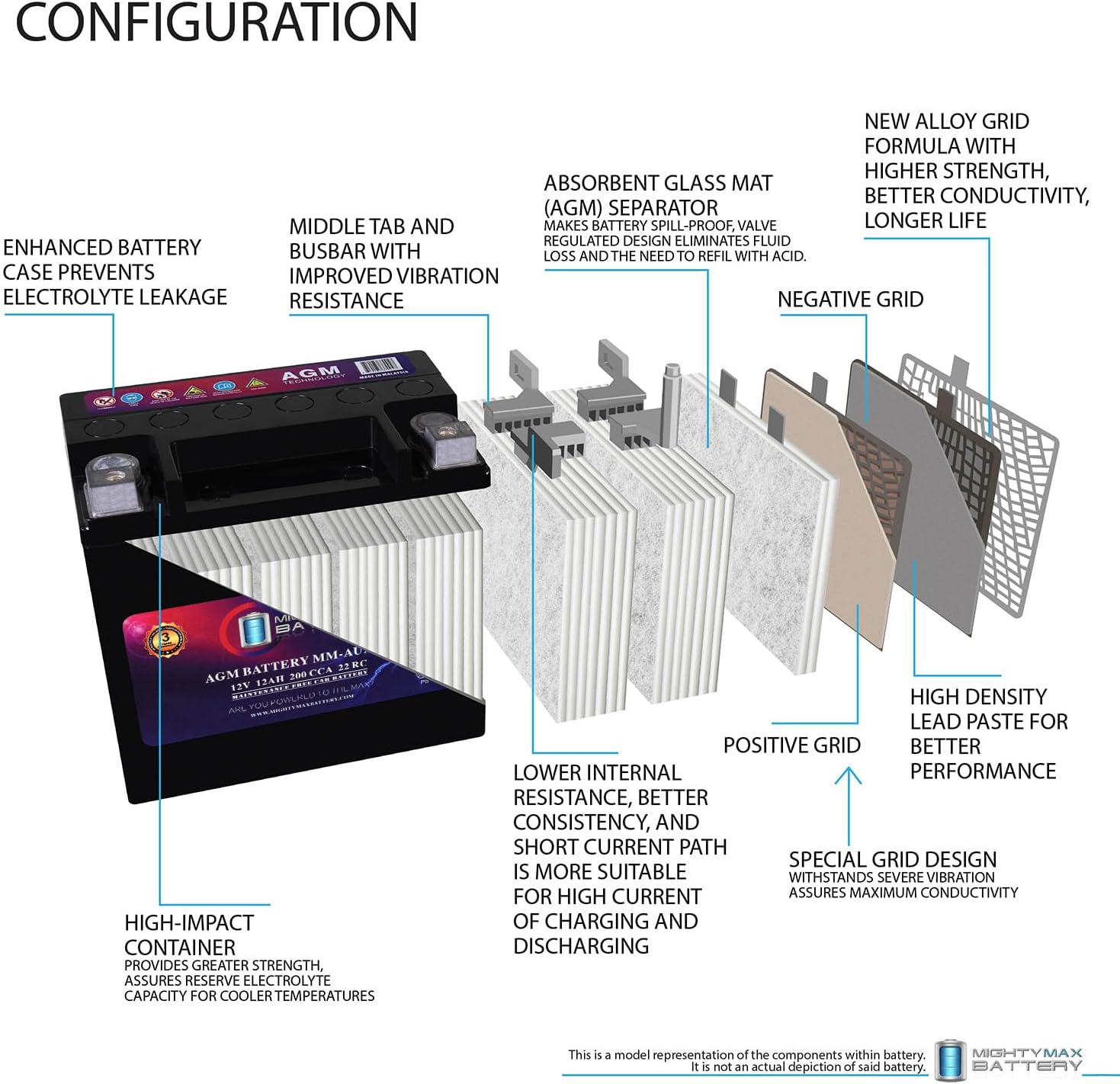 Mighty Max Battery MM-AUX12 Auxiliary Battery 12V 12Ah, 22RC, 200 CCA Rechargeable AGM Car Battery