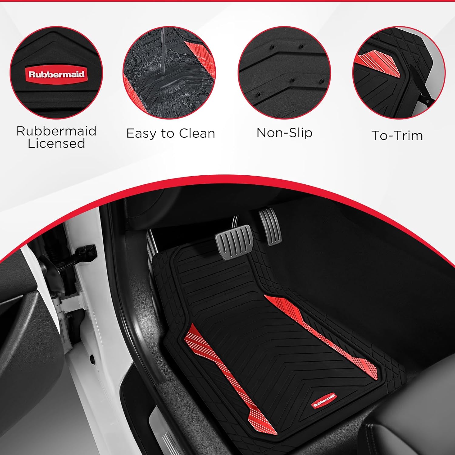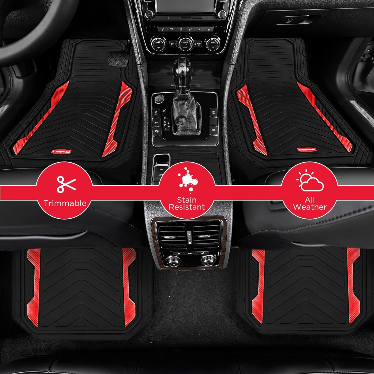Rubbermaid Car Floor Mat, Heavy Duty All-Weather Car Mats Full Set with Dual-Tone Red Aluminum Inserts – Universal Fit, Anti-Slip Backing, Trim-to-Fit for Most SUV, Sedan, Van