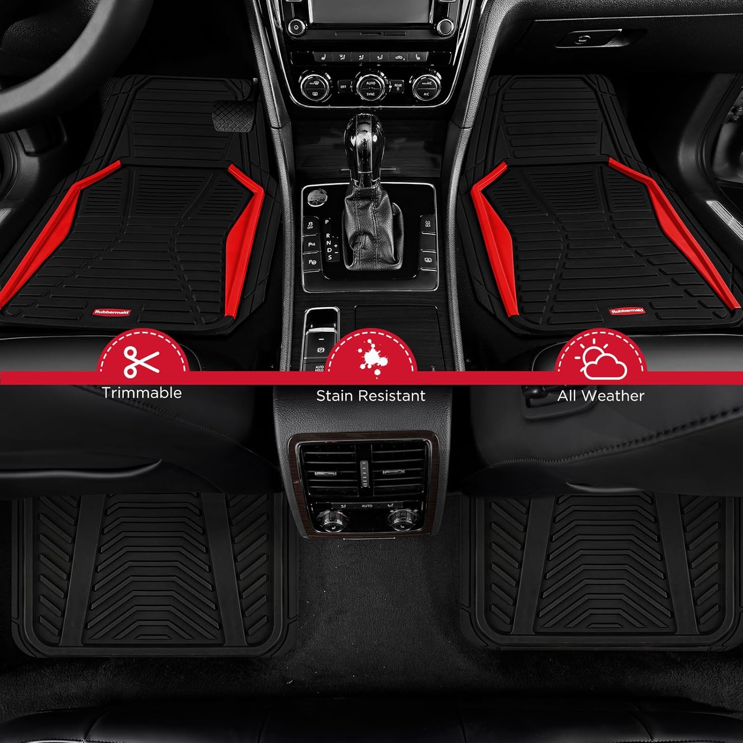 Rubbermaid Car Mat Full Set All-Weather Heavy-Duty 4 Pieces– Trim-to-Fit Universal Car Mats Full Set – Waterproof Rubber Floor Liners for Most Trucks, SUVs, Vans, and Sedans-Red
