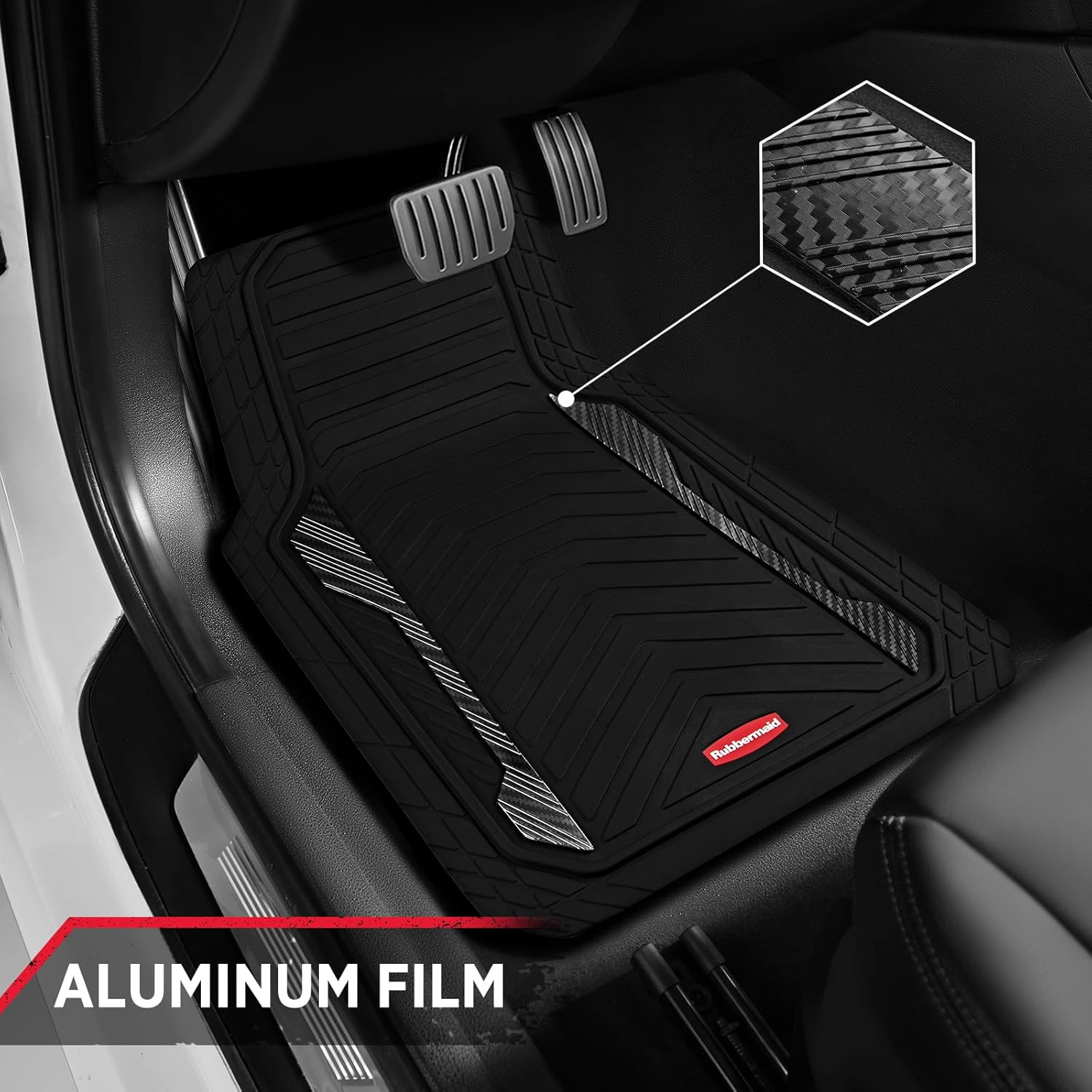 Rubbermaid Car Floor Mat, Heavy Duty All-Weather Car Mats Full Set with Dual-Tone Black Aluminum Inserts – Universal Fit, Anti-Slip Backing, Trim-to-Fit for Most SUV, Sedan, Van