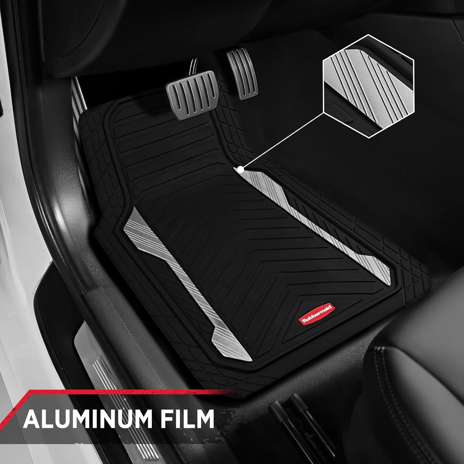 Rubbermaid Car Floor Mat, Heavy Duty All-Weather Car Mats Full Set with Dual-Tone Sliver Aluminum Inserts – Universal Fit, Anti-Slip Backing, Trim-to-Fit for Most SUV, Sedan, Van