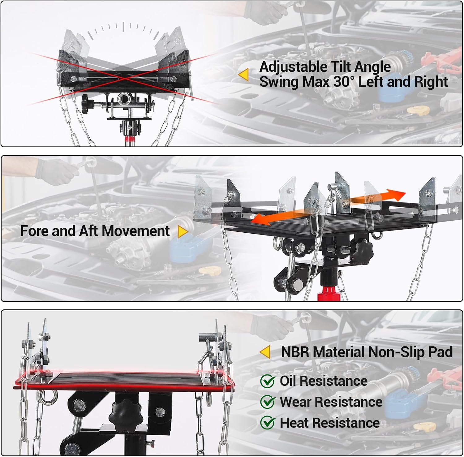 - 【Stable & Precise Control】- Our dual hydraulic lifting system utilizes a foot pedal mechanism, providing superior control compared to manual options. When the handle is released, the foot pedal enables slow and controlled descent of the transmission, ensuring precise positioning during repairs and minimizing the risk of damage to components.