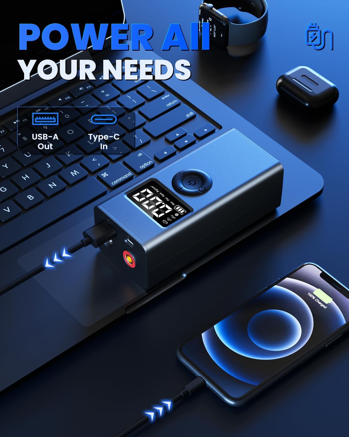 - Portable and Handy Size: Weighing only 1.5lb, cordless design with a storage bag, this portable air pump is easy to carry and store in compact spaces like cars, bicycle rack, or bags, making it an ideal companion for both travel and home use.