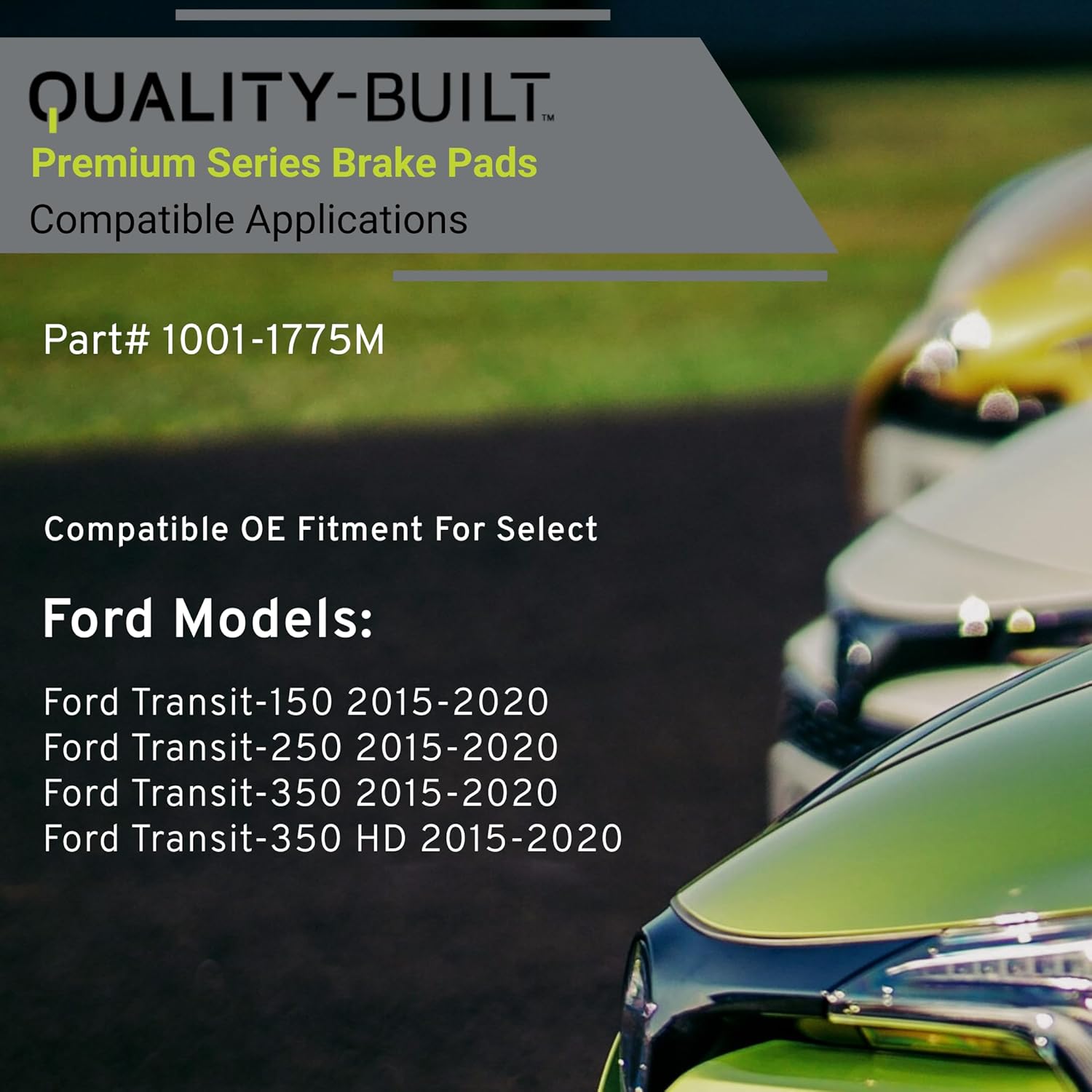 Premium Semi-Metallic Rear Brake Pads (1001-1775M) Compatible with Ford Transit-150 2015-2020, Ford Transit-250 2015-2020, Ford Transit-350 2015-2020, Ford Transit-350 HD 2015-2020