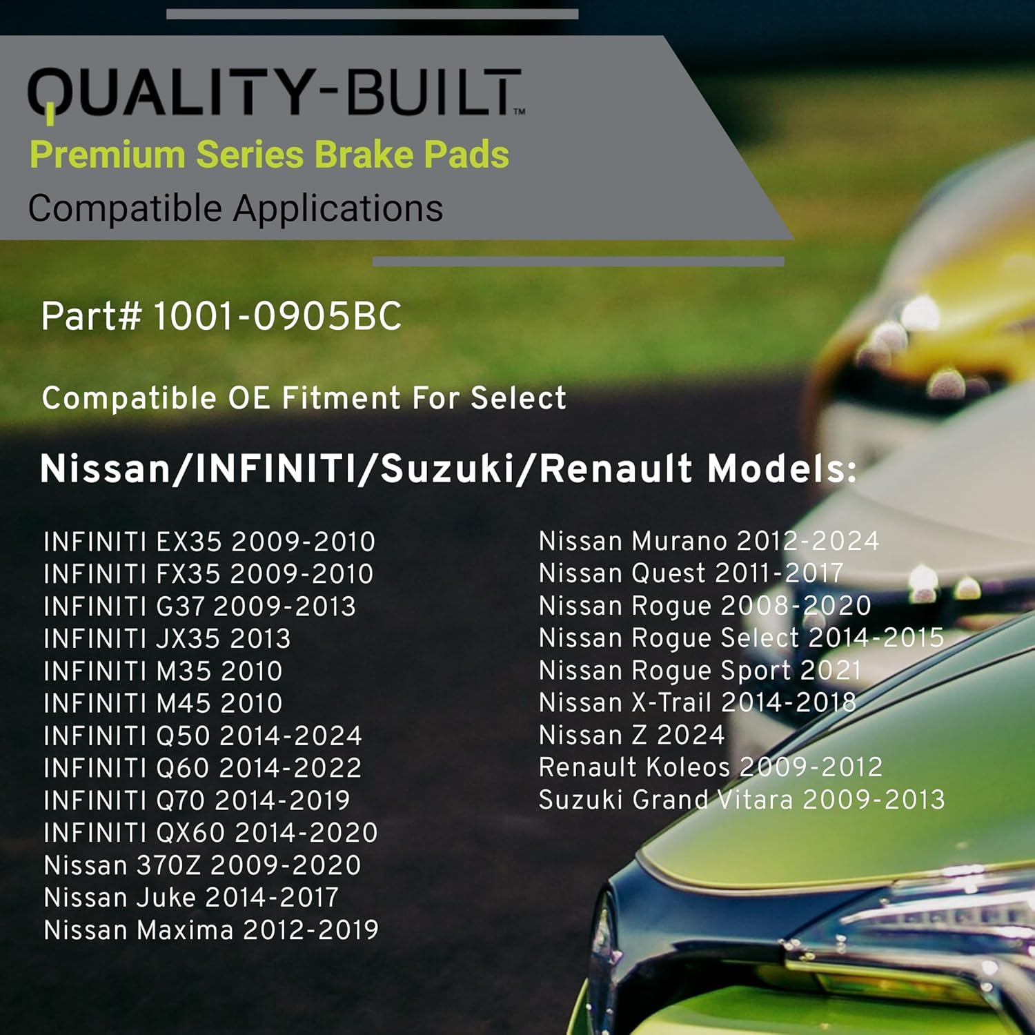 - FITMENT LIST: Select Models 2008-2024 NISSAN/ INFINITI/ SUZUKI/ RENAULT (1001-0905BC) Verify Fitment using AmazonConfirmedFit tool.