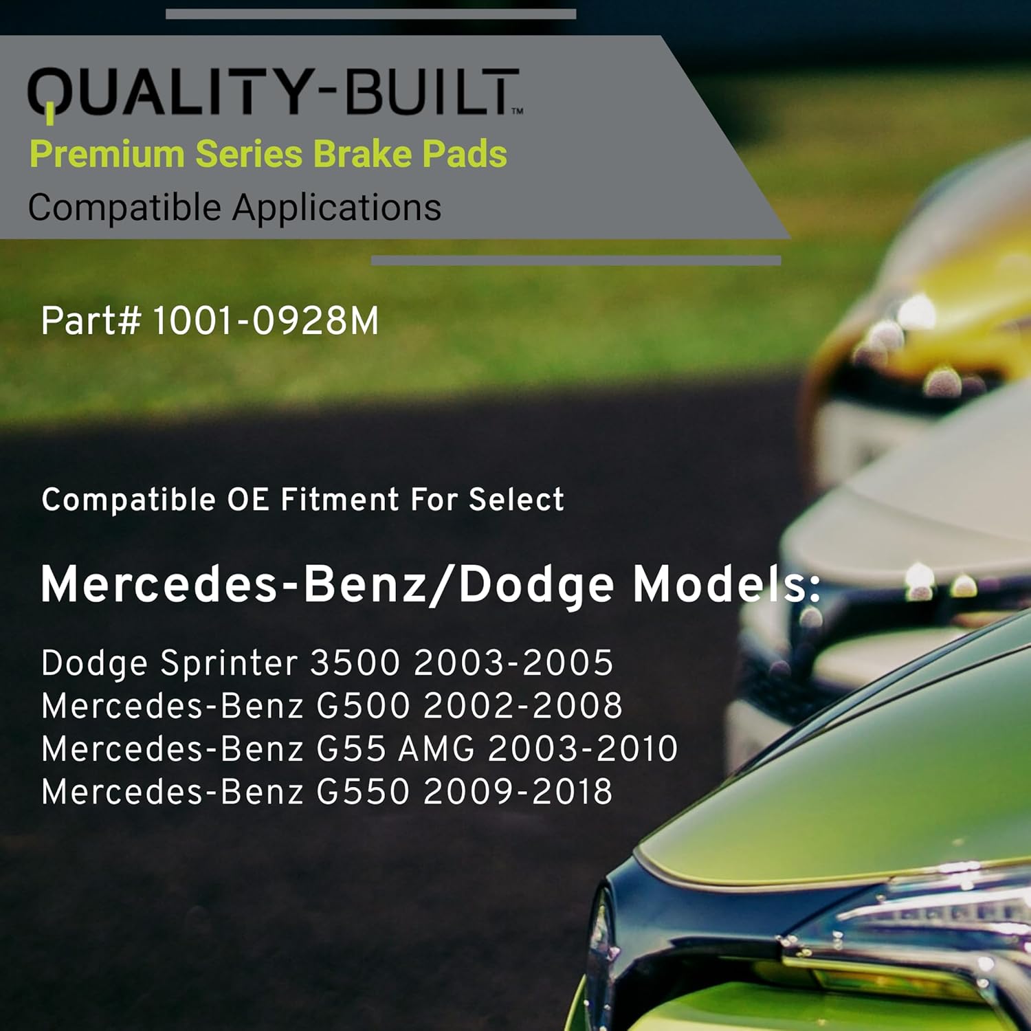 Premium Semi-Metallic Rear Brake Pads (1001-0928M) Compatible with Dodge Sprinter 3500 2005-2003, Mercedes-Benz G55 AMG 2010-2003, G500 2008-2002, G550 2018-2009