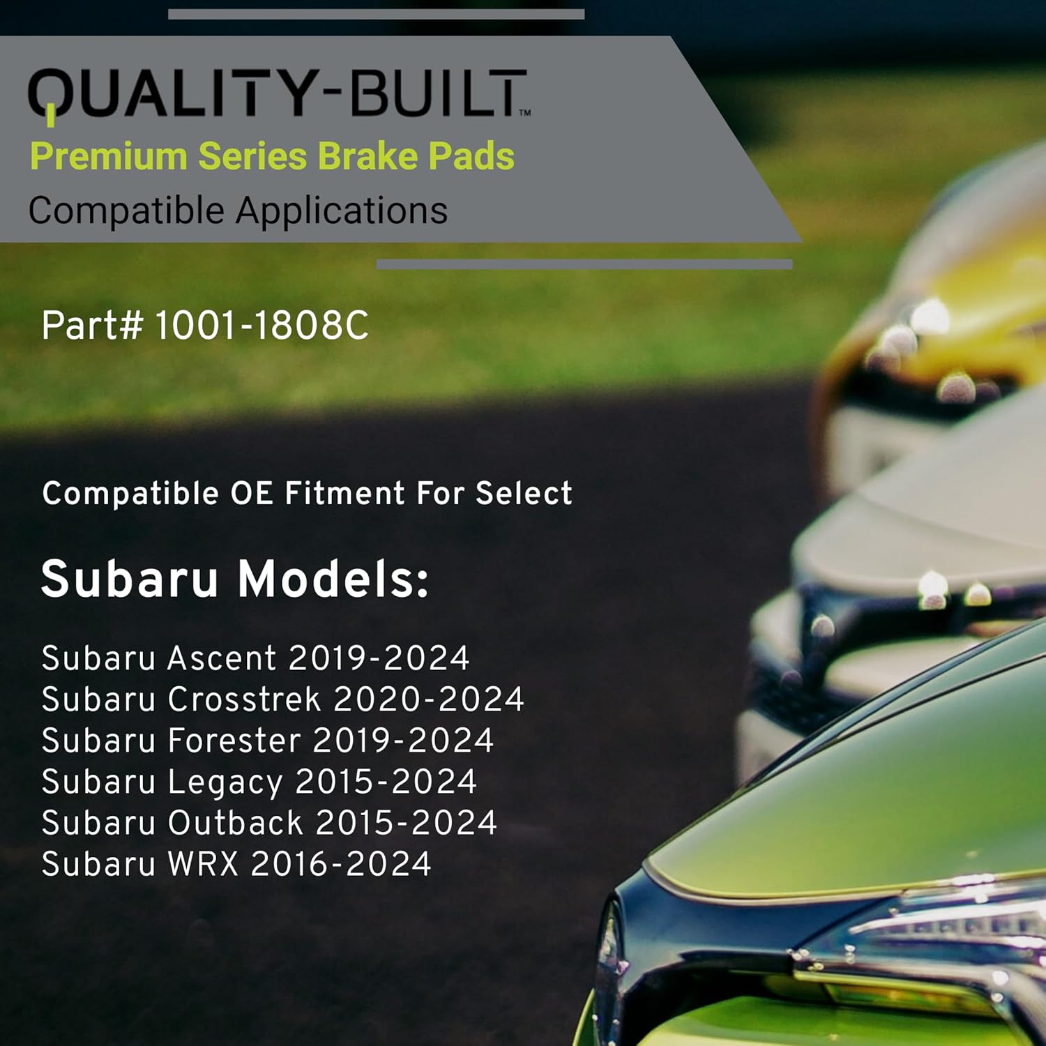 - VEHICLE FITMENT LIST: Subaru Ascent 2024-2019, Crosstrek 2024-2020, Forester 2024-2019, Legacy 2024-2015, Outback 2024-2015, WRX 2024-2016 (PART#1001-1808C)