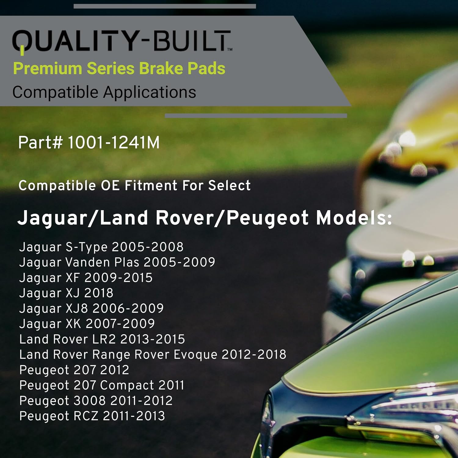 Premium Semi-Metallic Front Brake Pads (1001-1241M) Compatible with 2005-2018 Jaguar/Land Rover/Peugeot (207/207 Compact/3008/LR2/Range Rover Evoque/RCZ/S-Type/Vanden Plas/XF/XJ/XJ8/XK)