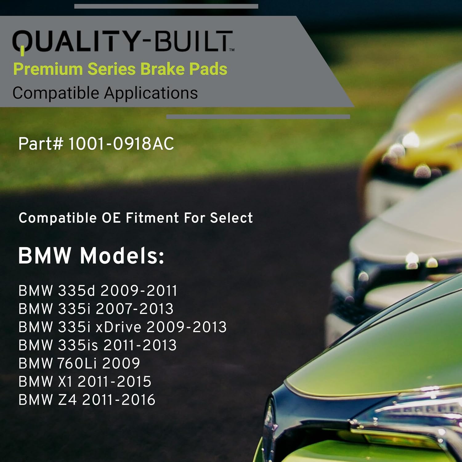 - VEHICLE FITMENT LIST: BMW 335d 2011-2009, 335i 2013-2007, 335is 2013-2011, 335i xDrive 2013-2009, 760Li 2009, X1 2011, X1 2015-2013, Z4 2016-2011 (PART#1001-0918AC)