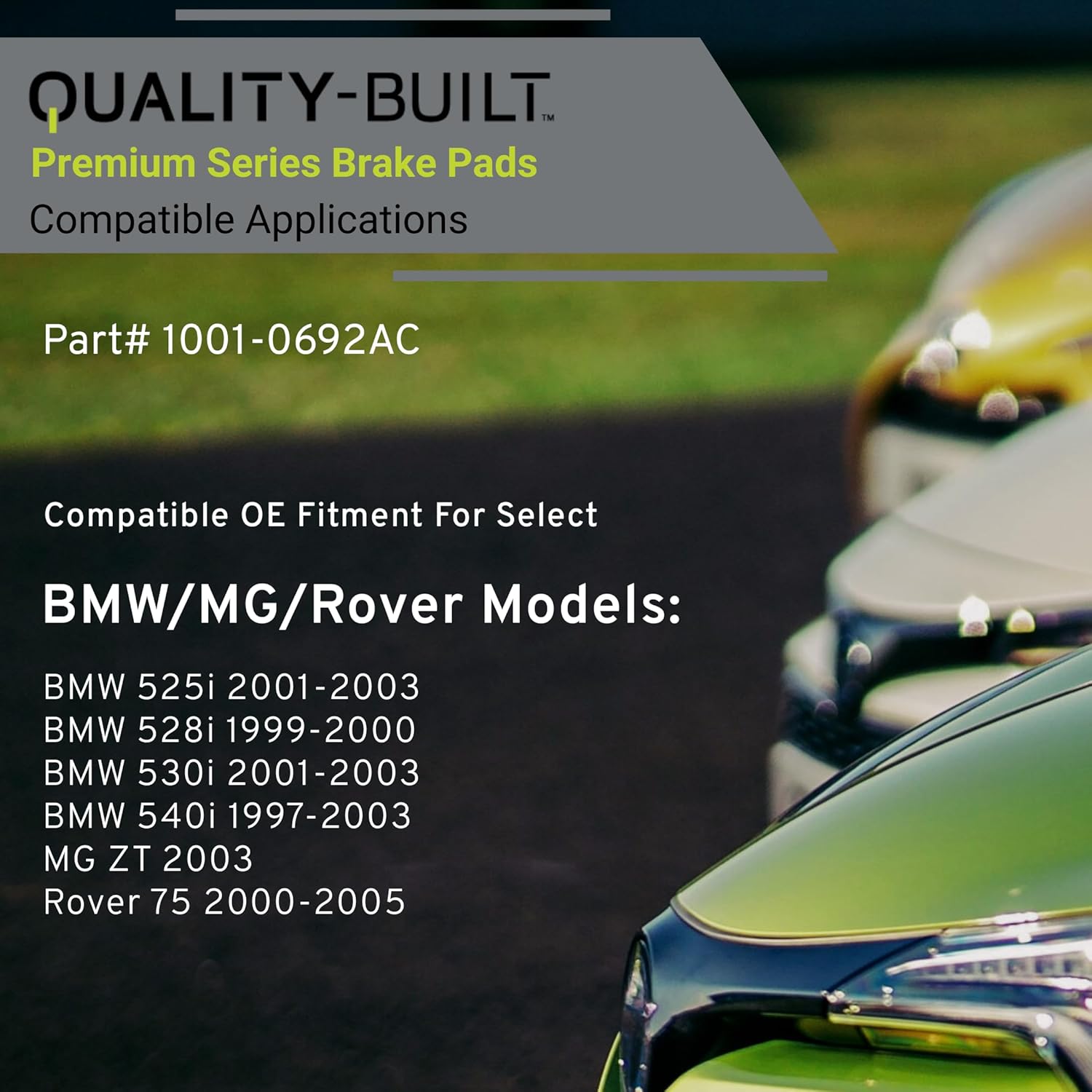 Premium Ceramic Rear Brake Pads (1001-0692AC) Replacement for BMW 525i 2003-2001, 528i 2000-1999, 530i 2003-2001, 540i 2003-1997, MG ZT 2003, Rover 75 2000, 75 2005-2003