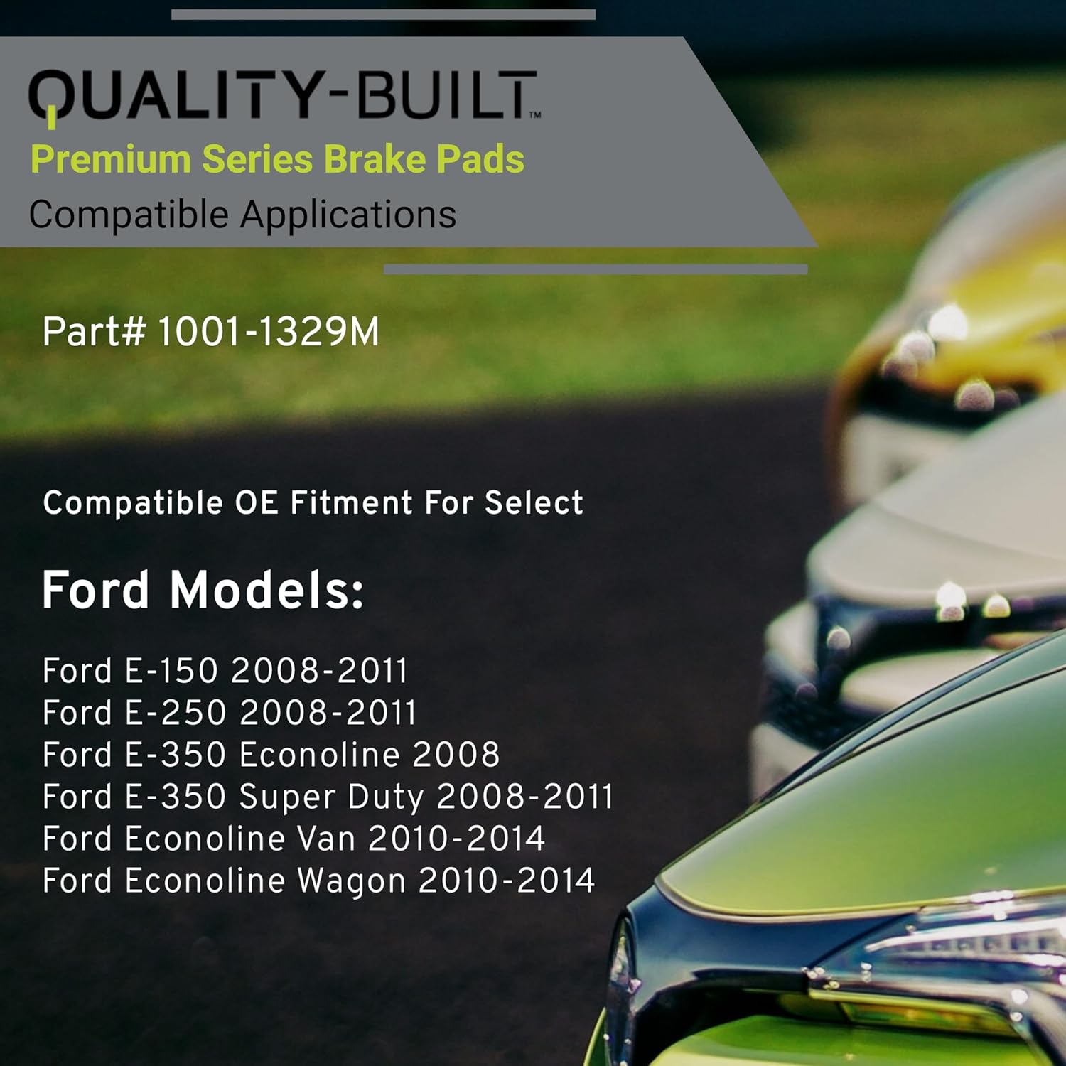 Premium Semi-Metallic Rear Brake Pads (1001-1329M) Compatible with 2008-2014 Ford (E-150/E-250/E-350 Econoline/E-350 Super Duty/Econoline Van/Econoline Wagon)