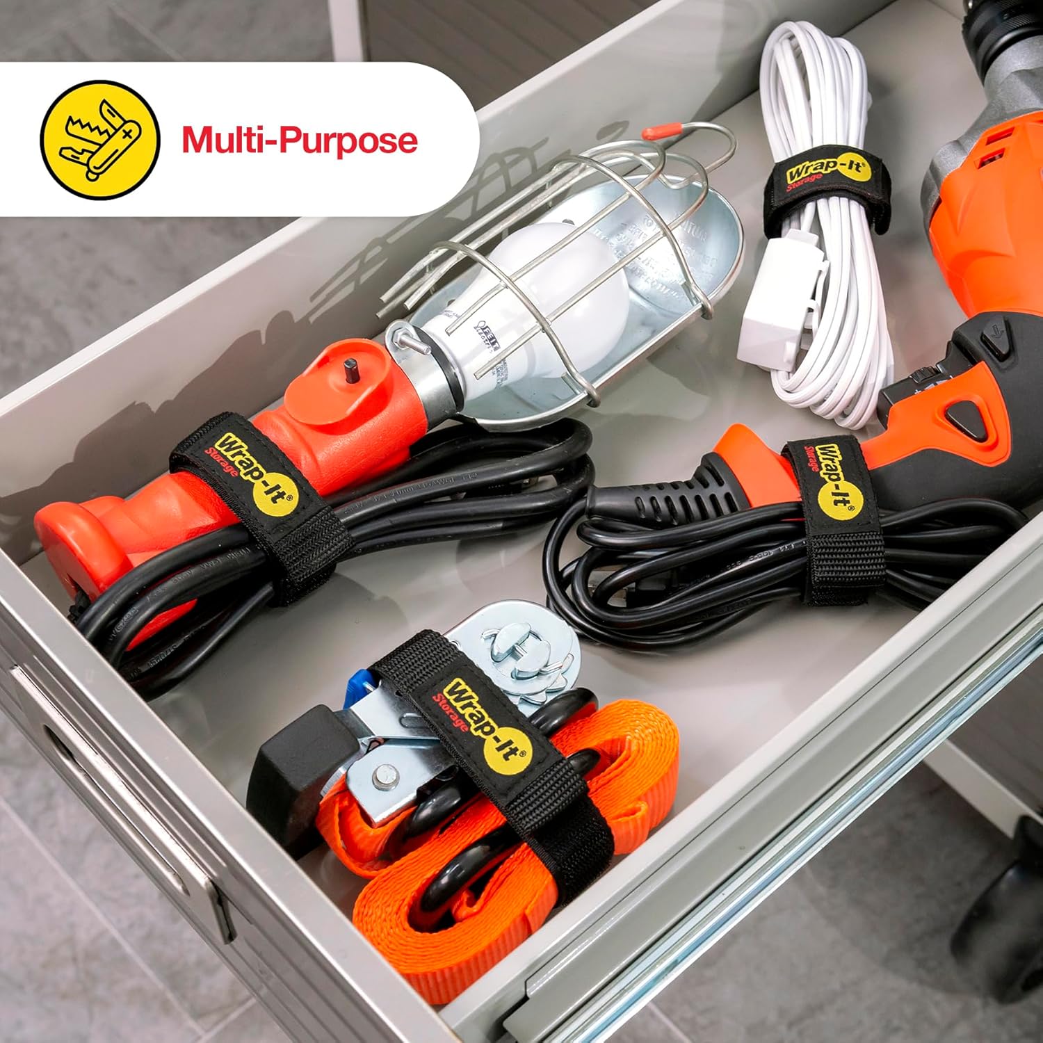 - YOU GET IT, RIGHT? - These are hook and loop straps to help organize cords, cables, and much more. They won't teach you how to ride a bike, or help you remember the titans, but they will help you stretch your limited motivation to tidy up your garage, shed, boat, RV, and home.