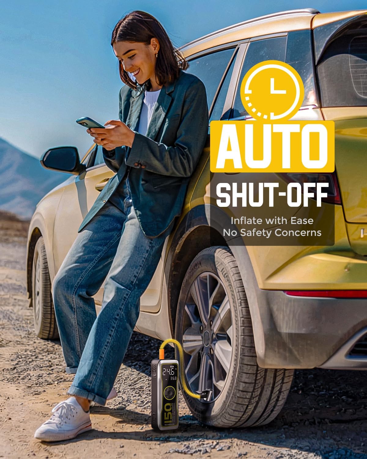 NEVERLAND Tire Inflator Portable Air Compressor - 16000mAh 150PSI Air Pump for Car Tires with Large LED Display,12V DC Tire Inflator with LED Light,Auto shut-off, for Car Motorcycle Bicycle Balls