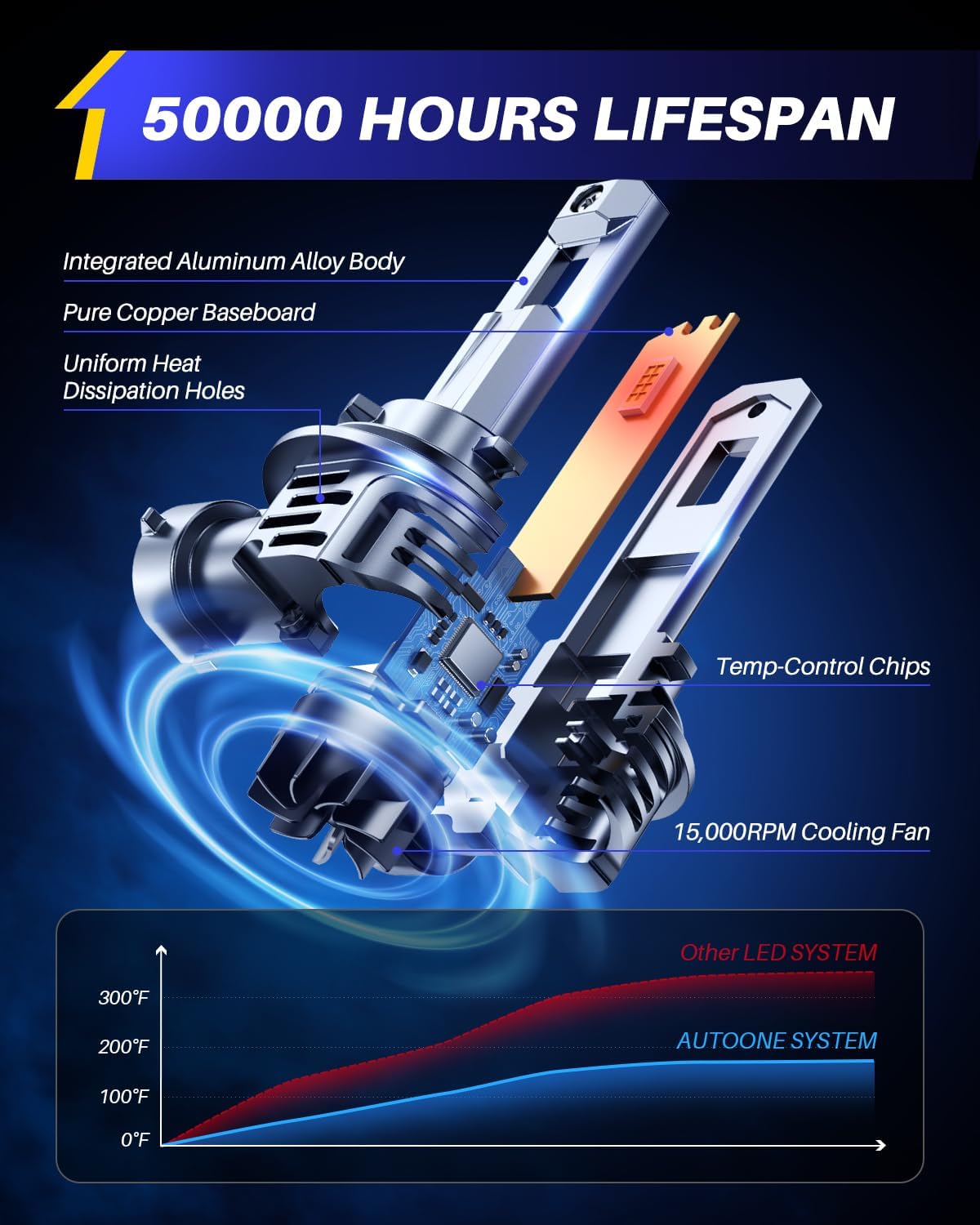 - Plug-n-Play: Compact size with halogen's 1:1 design, same base height and overall length for autoone led h11 9005 bulbs. Without additional drivers and wiring harness, directly Insert and clockwise to lock, hassle-free intall even you are a novice