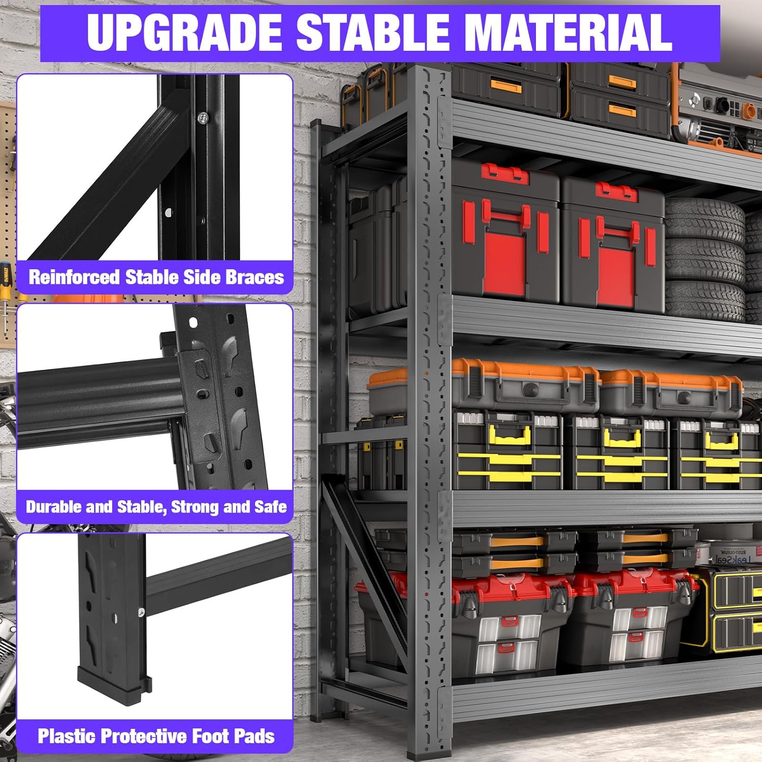 - 【Heavy-duty Garage Shelves with Big Capacity】These wire garage shelving are made with highest quality industrial grade metal, thickened columns and beams ensure maximum stability in these garage shelving, the 4-tier heavy-duty wire shelving rack with up to 6000 pounds of weight capacity is what you really need!