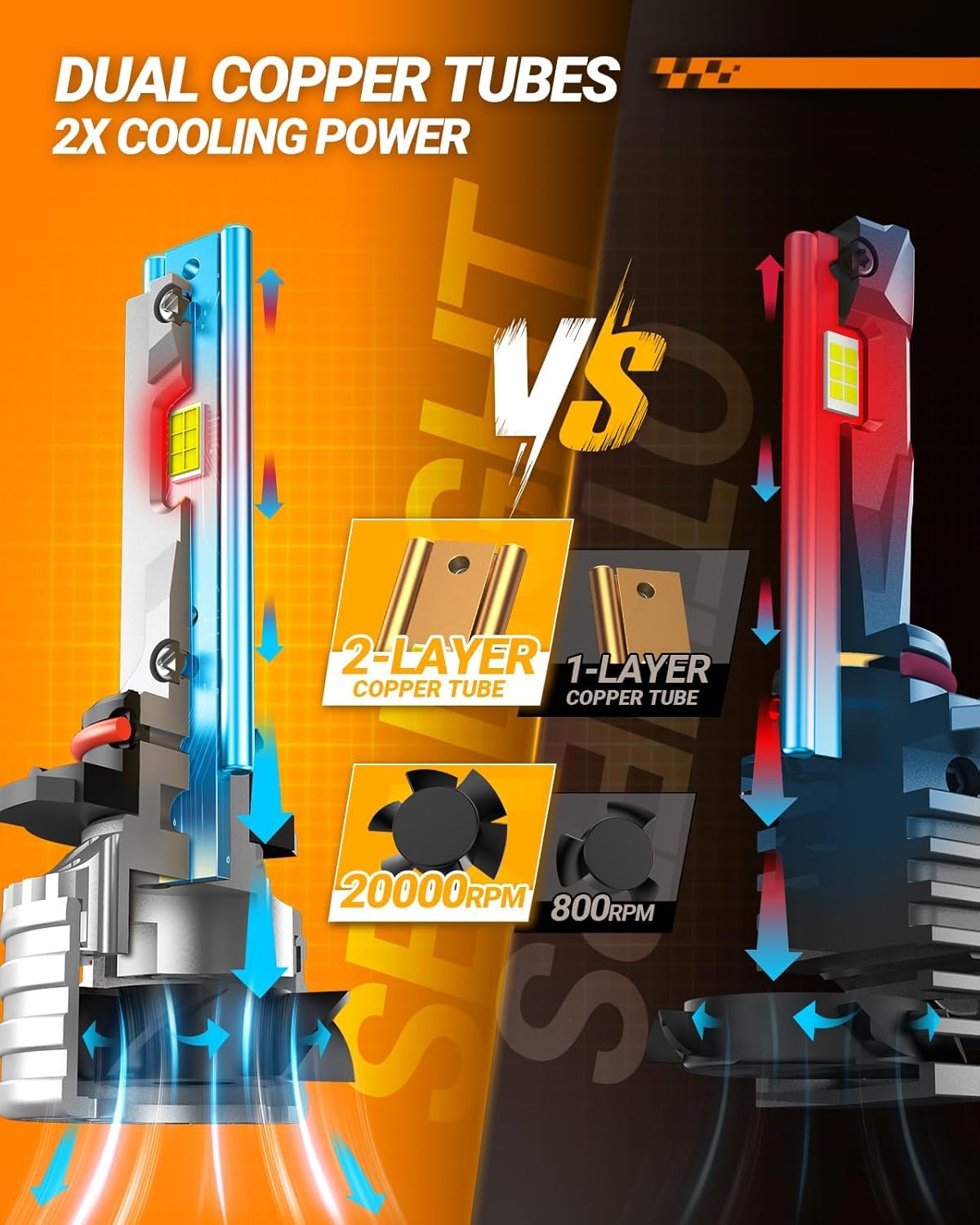 - Over 50,000 Hours Long Lifespan: The double cooling copper tube and 20,000 RPM cooling turbo fan helps speed down the core temperature, reached a perfect balance of long-lasting lighting and service life. No frequent bulb replacement troubled