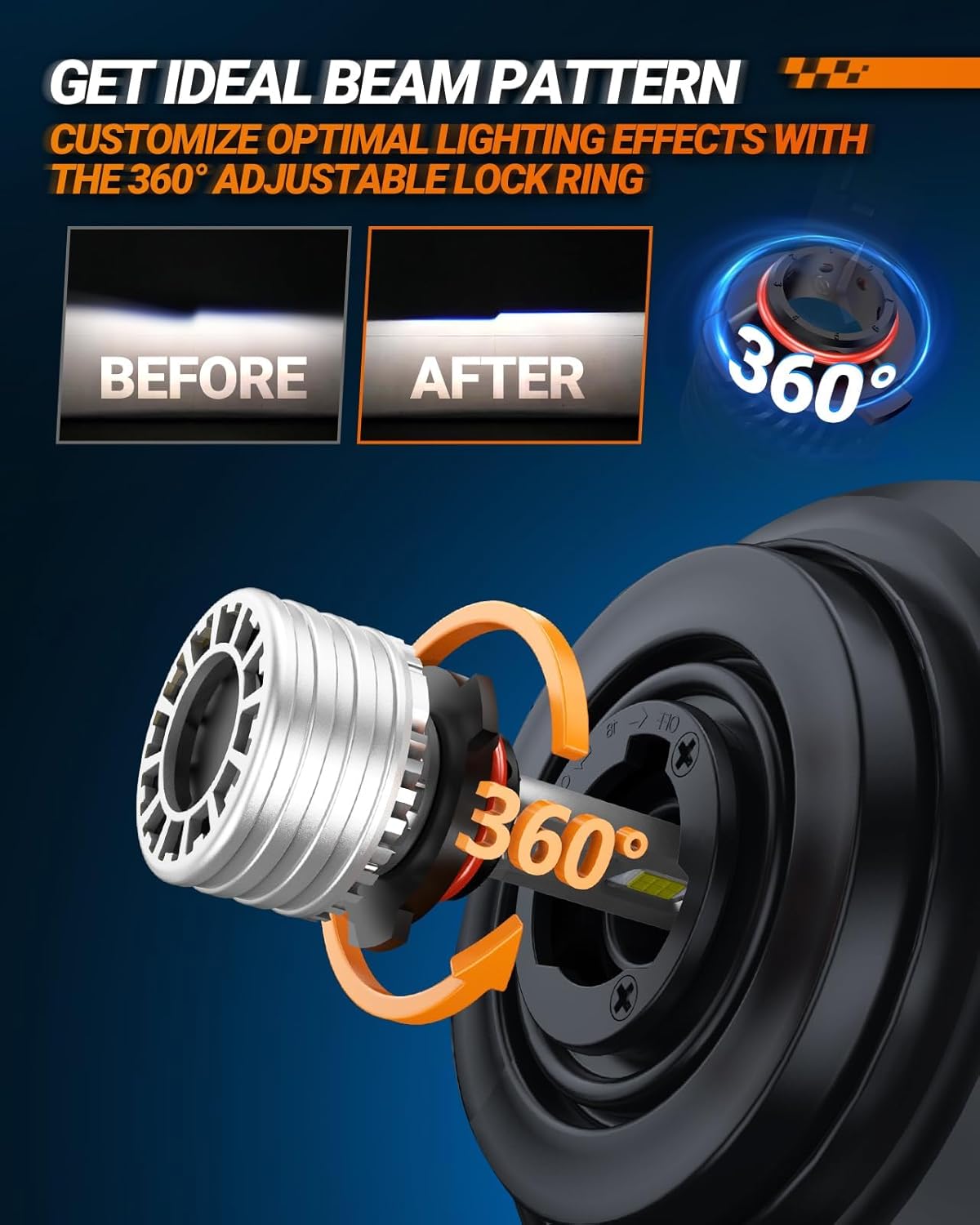 - Craft Ideal Light Beam : With 360° adjustable lock ring, HB3 bulbs ensure focus Light ensures higher on the passenger side to illuminate road signs and lower on the driver's side to prevent blinding other drivers, making night driving safety