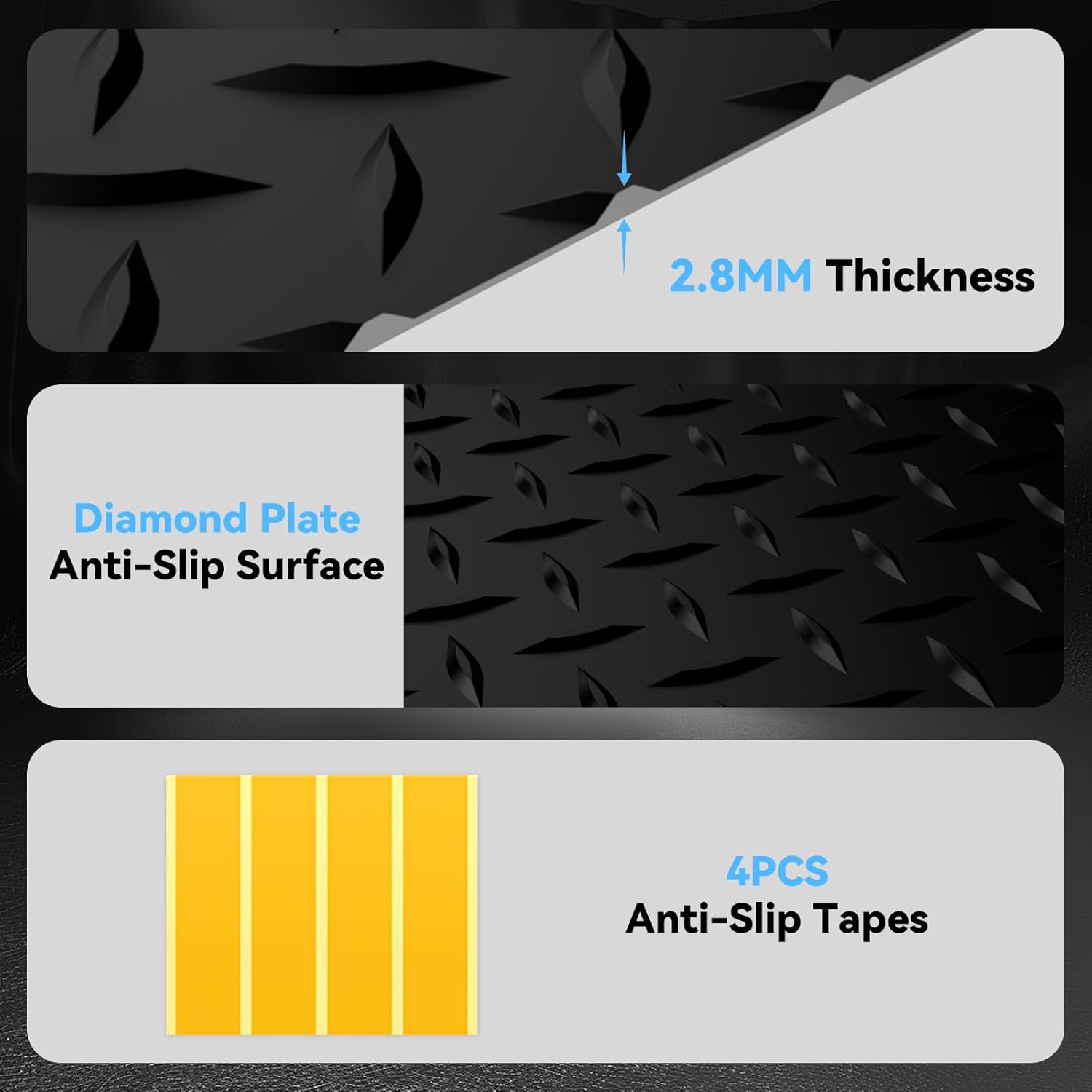 - Anti-Slip & Effortless-Clean Surface: The raised diamond pattern of our garage floor mats provides excellent grip, keeping pedestrians and parked vehicles safe even in wet conditions. Stains on the surface of the floor mat are easy to clean.