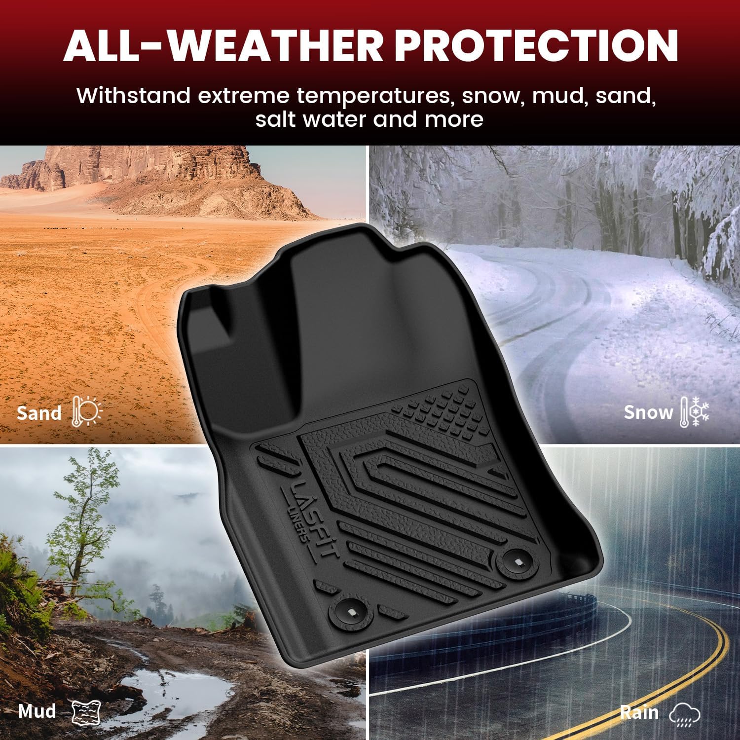 - ALL WEATHER PROTECTION - Shields your floor from dirt, mud, salt, rain, snow and even hot summer temperatures. Cleaning up daily wear and tear off our car mats is a breeze.