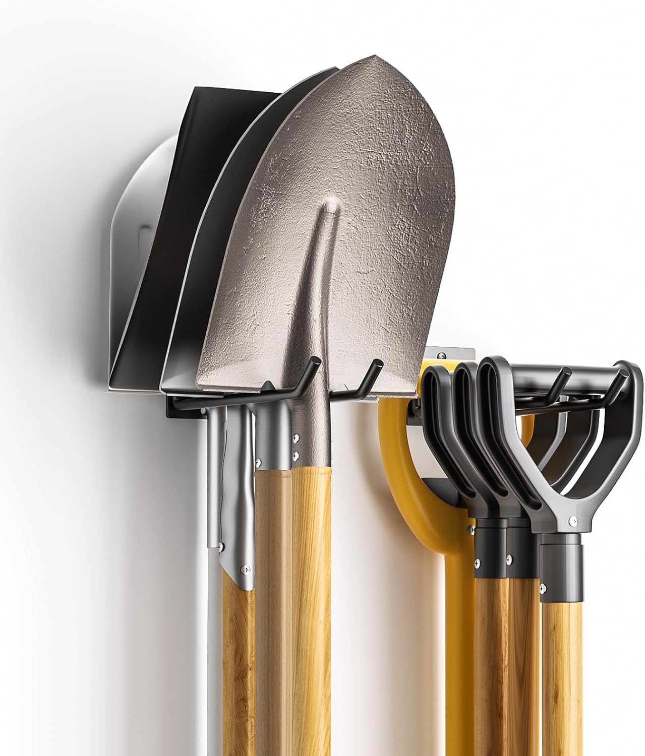 - Efficiently organize Tools: The garden tool organizer rack features a unique long Double-Prong structure that can hold about four long-handled tools per hook, with a weight capacity of up to 22kg, ensuring secure storage for heavy-duty garden tools like shovels, rakes, and hoes without bending or sagging