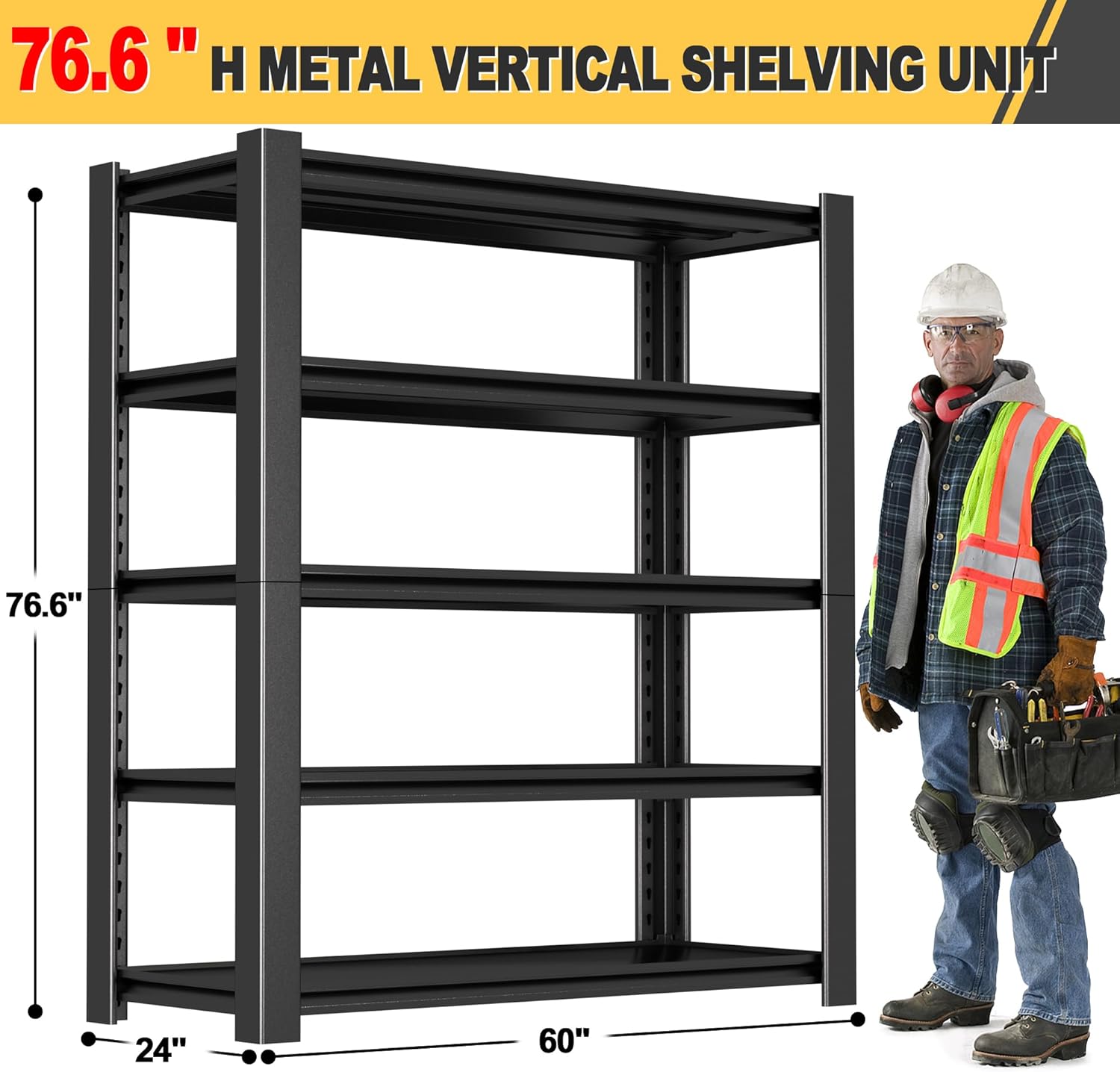 76" H x 60" W x 24" D 5-Tier Heavy Duty Garage Shelving Unit, 3000 LBS Capacity Metal Storage Rack,Adjustable Steel Shelves for Garage, Warehouse, Basement, Pantry, Workshop.2 Pack