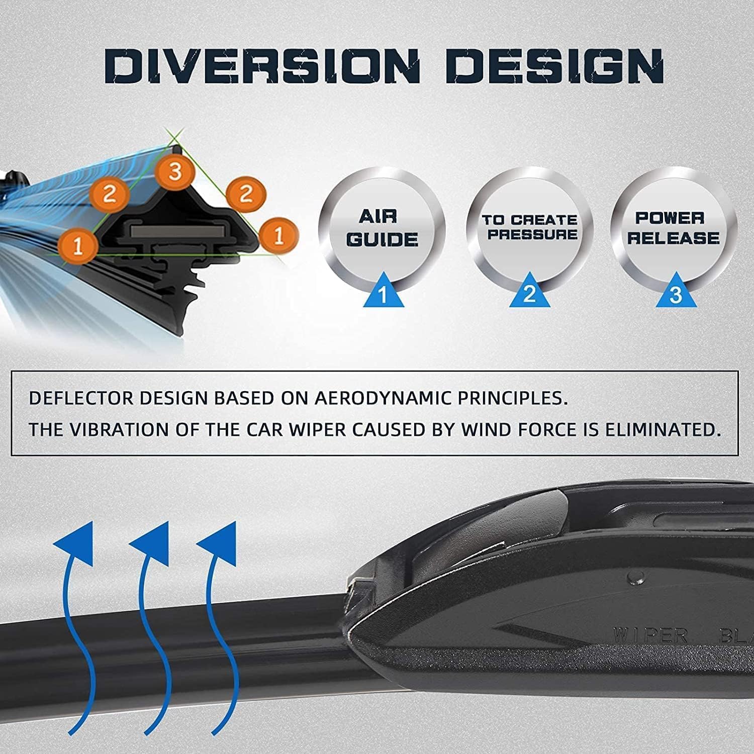 - 【ALL- WEATHER PERFORMANCE】- The patented 1,500 pressure points on the blade deliver the quietest performance. Higher visibility and lower-DB wipe ensure the driving safety.