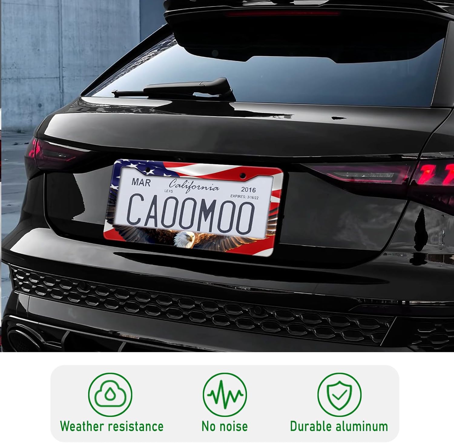 Eagle American Flag License Plate Frame, US Flag Car Tag Frame Holder Covers, Metal Aluminum Rustproof Car Accessories for Men Women 2 Holes with Screws