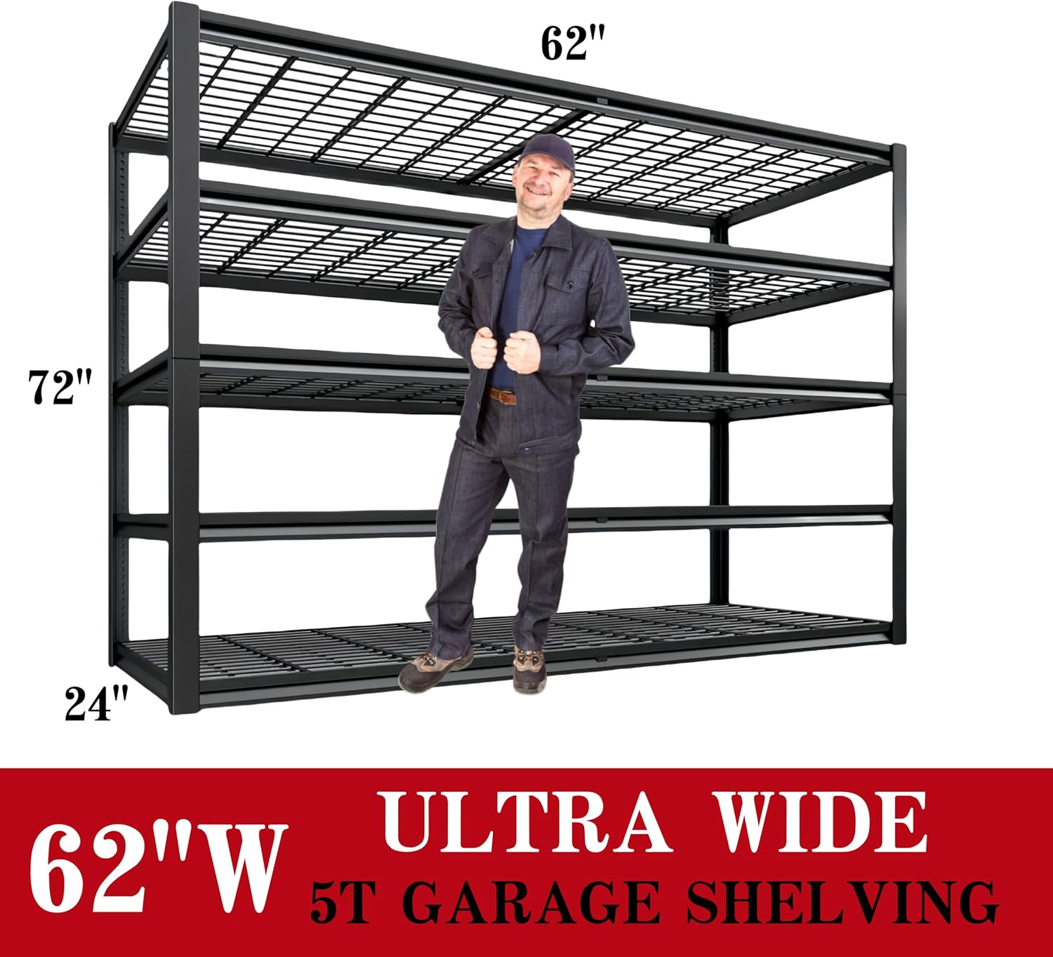 - 【62"W x 72"H x 24"D Wide Storage Shelves】The garage shelving heavy duty is suitable for garage, warehouse, basement, warehouse, library, etc. The 5 tier metal shelves for storage shelves not only expands your storage space, makes your home clean and orderly, it is your best choice