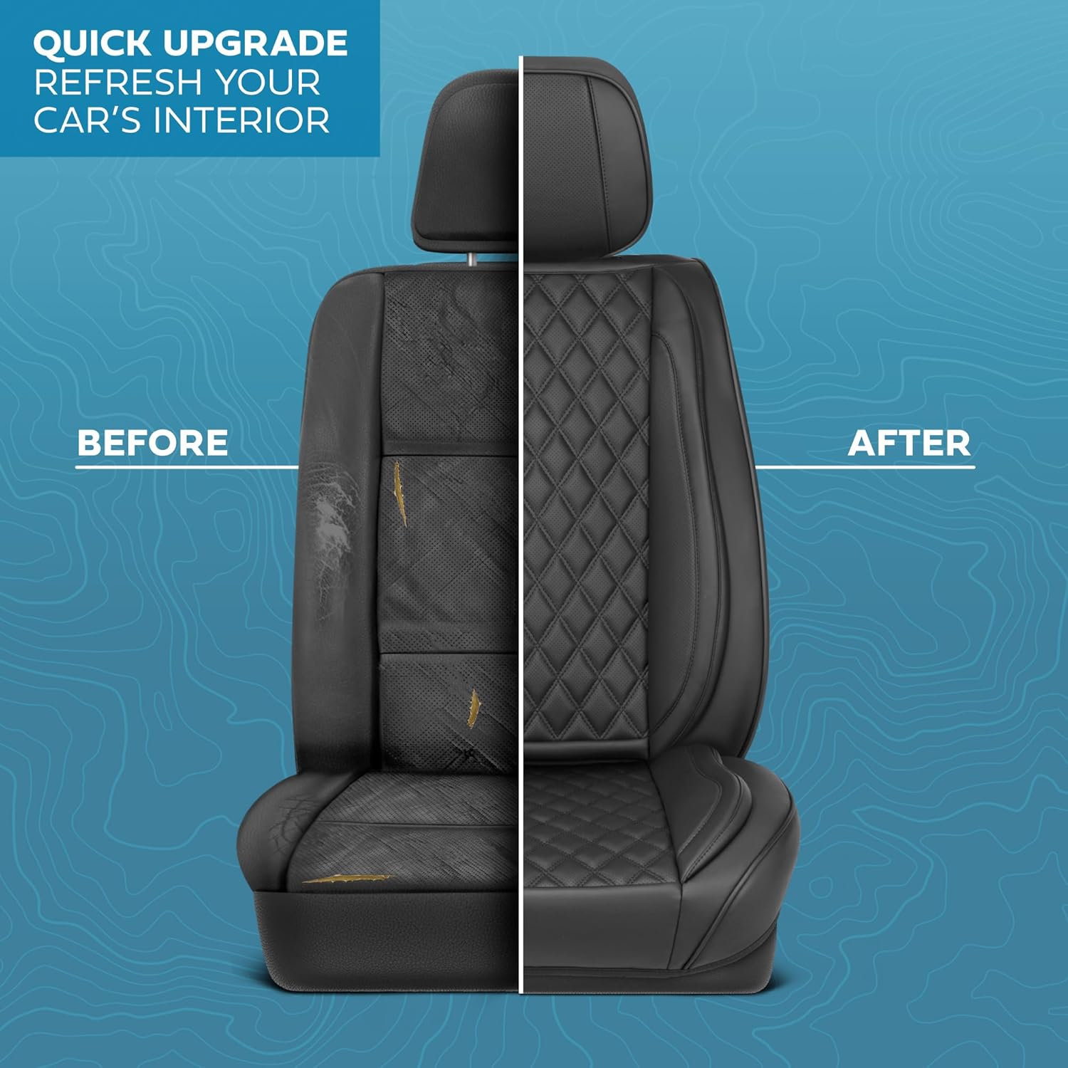 - SMART LUXURY: Why spend $350–$750 per seat on reupholstery? MotorBox Elite Edition seat covers bring affordable elegance to any vehicle. Enjoy a durable, upscale look and feel at a fraction of the cost. Perfect for refreshing an old car or personalizing a new one, these universal fit front covers are easy to install and come with a 1-year warranty for peace of mind.