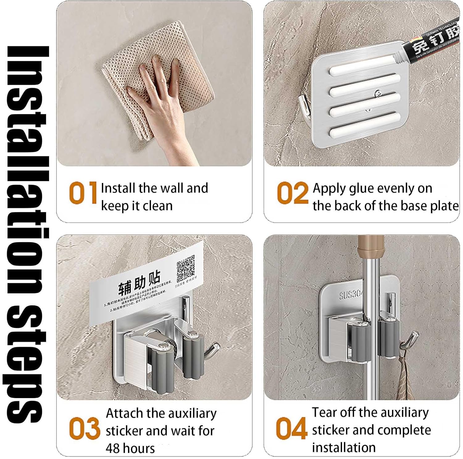 - Easy to Install: Broom holder wall mount self adhesive is easy and convenient to install, just stick on the wall with strong self adhesive which firmly keeps your mop in place and guards them from falling off