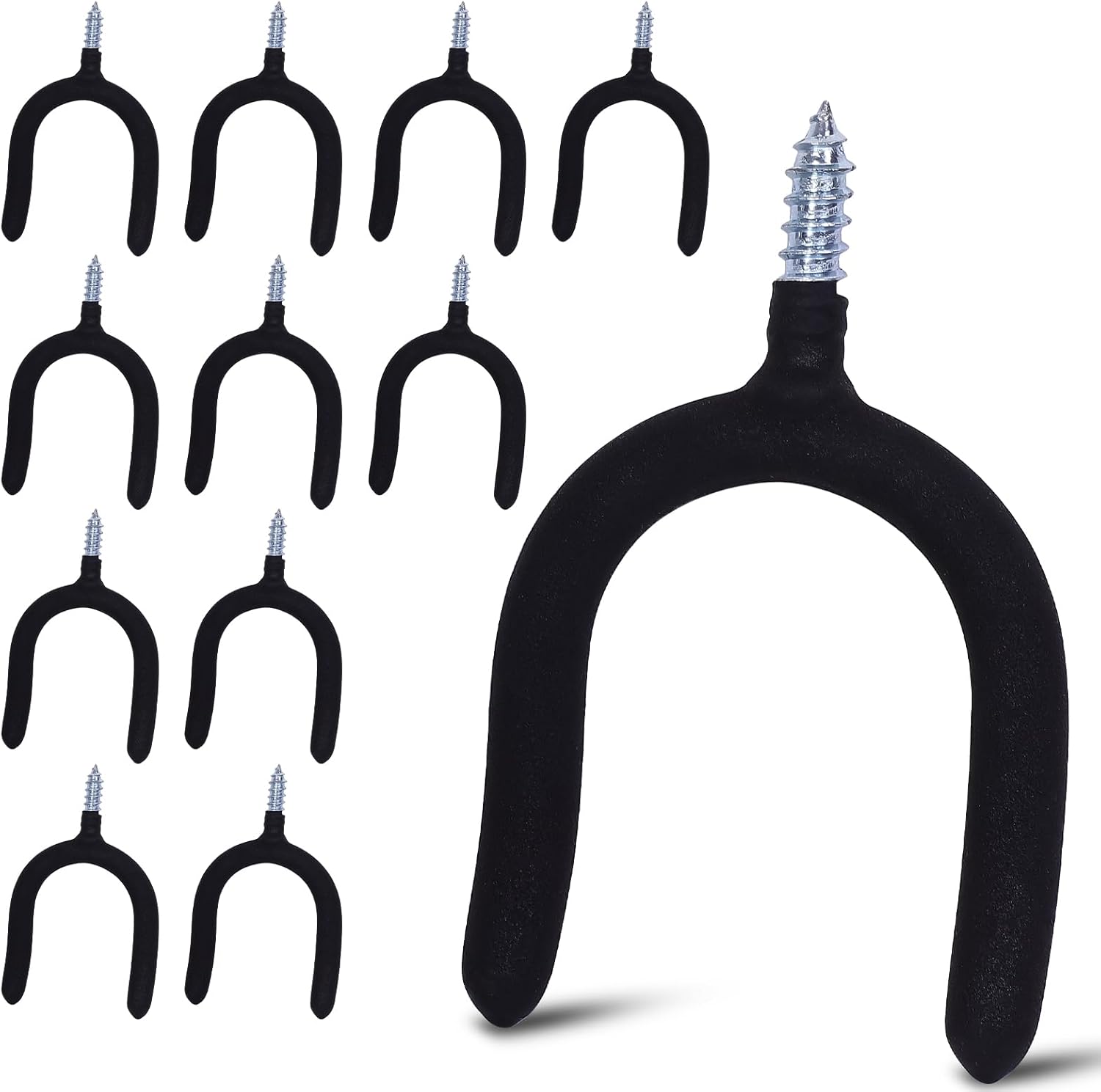 12 Pack Garage Storage System Steel U Hooks with Anti-Slip Coating Home Improvement and Organization Screw in Hooks Easy Wall Mounting Heavy Duty Bike and Ladder (Black, 12 Pack)