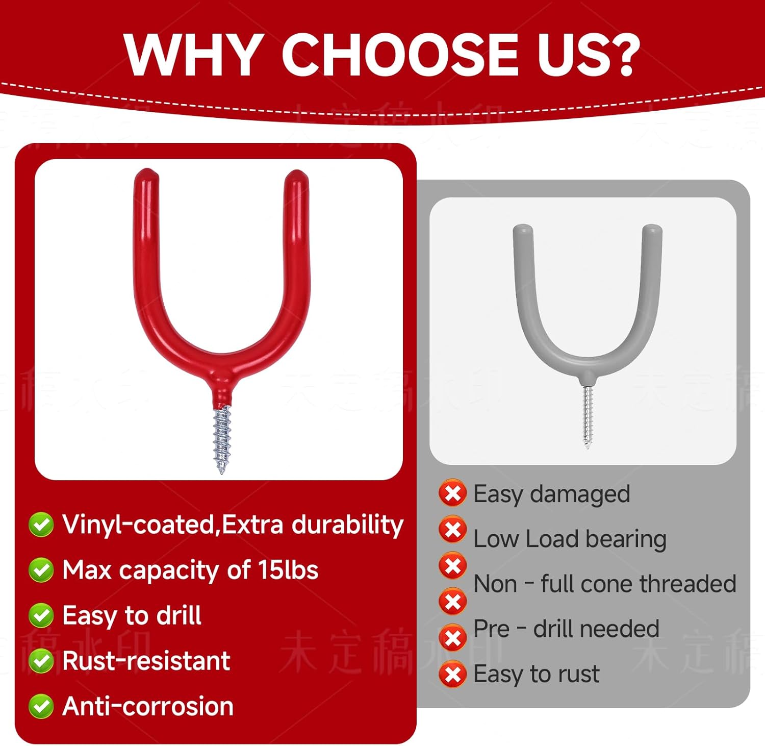 Lian.Ripple.Lian16 PackGarage Storage System Steel U Hooks with Anti-Slip Coating Home Improvement and Organization Screw in Hooks Easy Wall Mounting Heavy Duty Bike and Ladder (Red, 16 Pack)
