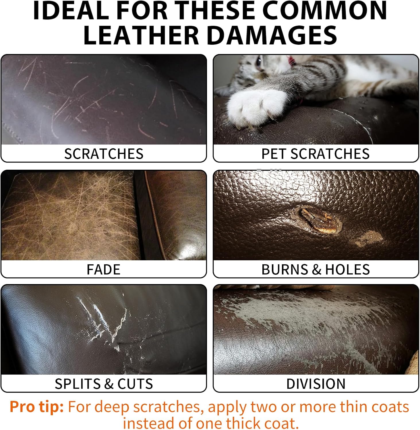 - Vinyl Repair Kit for Furniture:vinyl repair kit is formulated with high-quality, fast-drying liquid adhesive. It effectively repairs scratches, cuts, holes, tears, cracks, marks, and pet damage (cats/dogs) on leather surfaces.