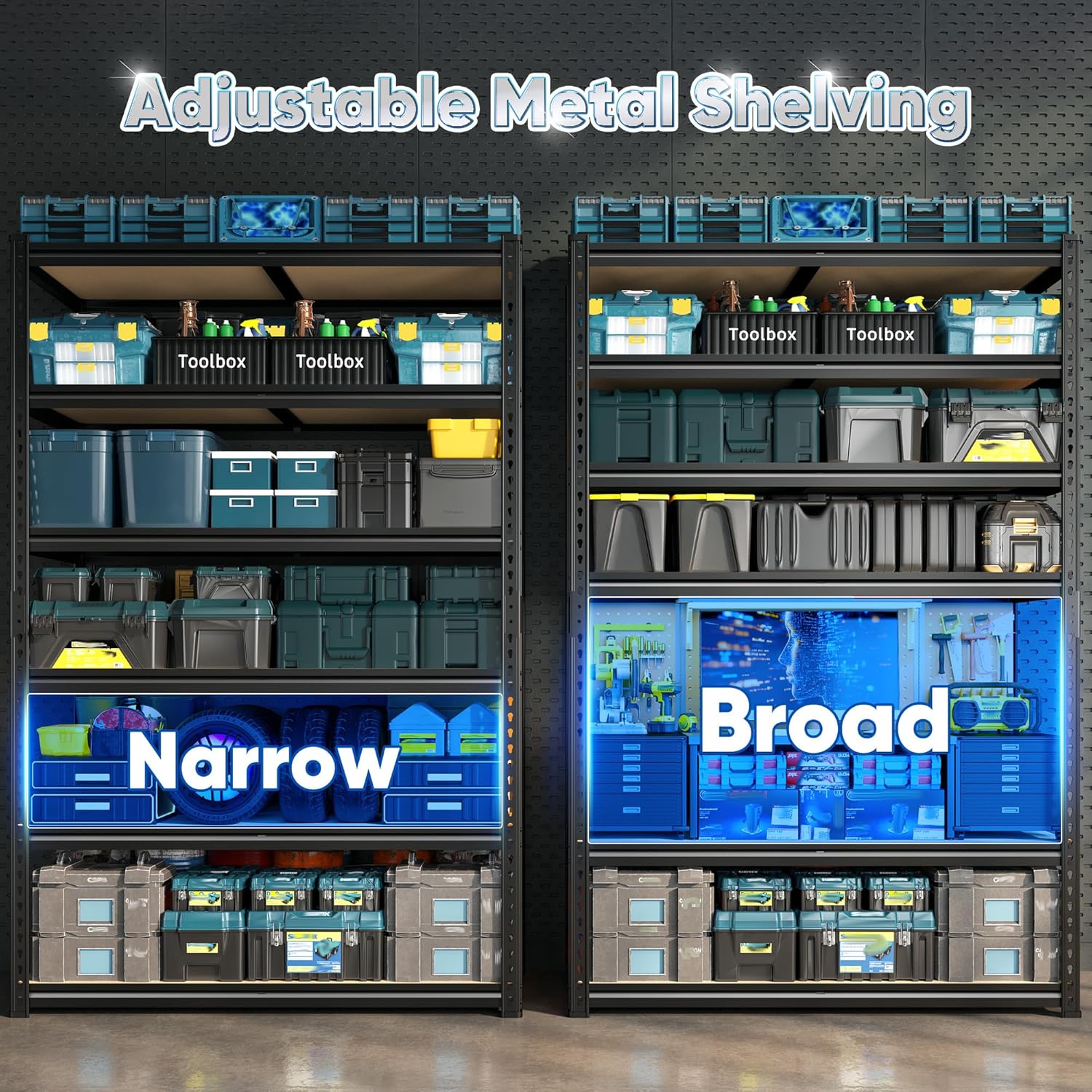 84" H Garage Shelving, 6 Tier Storage Shelves Load 3000 lbs, Adjustable Garage Shelves, Metal Shelving Unit for Warehouse, Basement, Pantry, 40" Wx 16" D x 84" H, Black