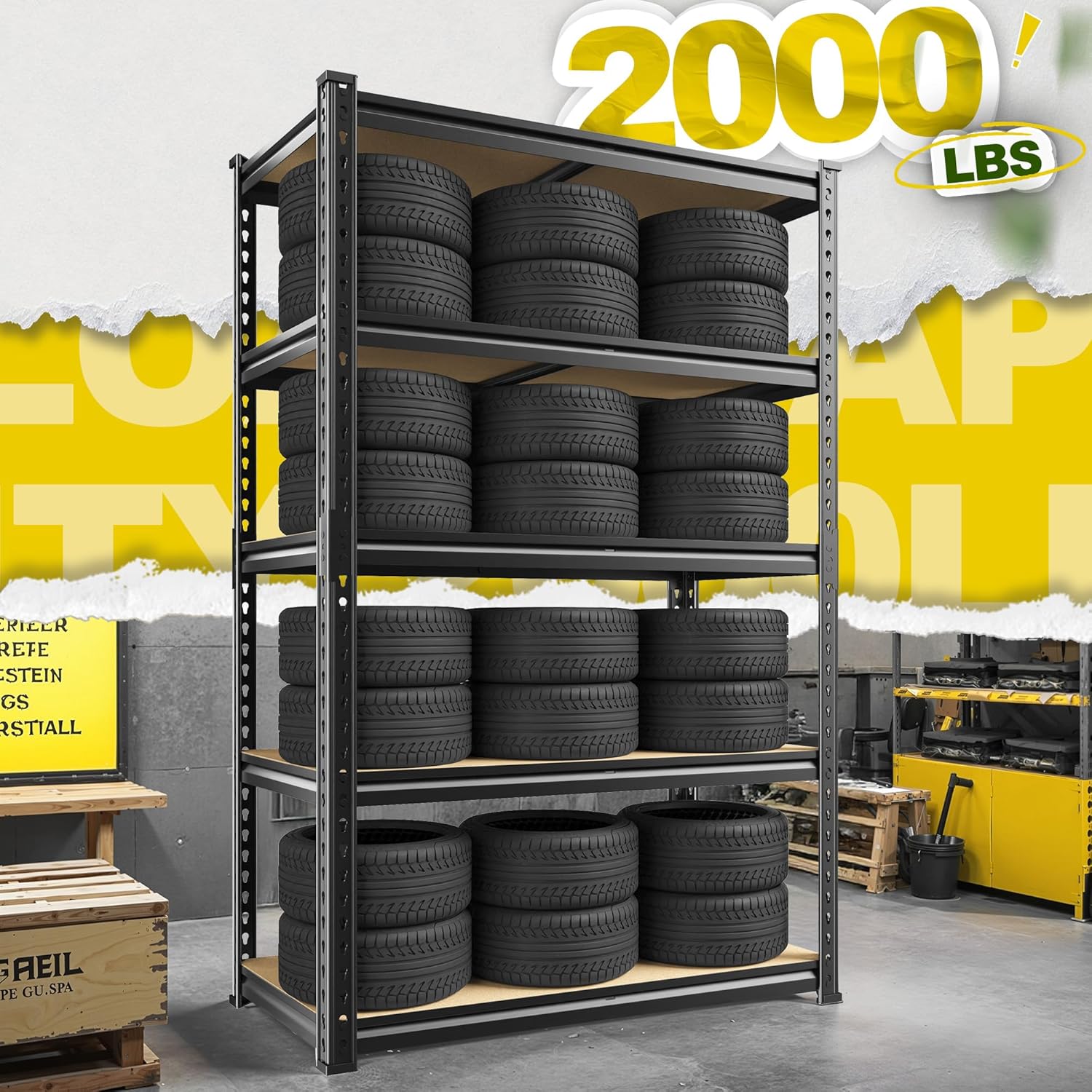 - 【Multipurpose 5 Tier Storage Shelves】The 5 tier adjustable shelf design allows for effective classification and organization, catering to your storage requirements for a variety of items such as garage tires, storage tools, storage boxes, food, and so on. 63"H*31.5"W*15.7"D provides sufficient storage space. It is ideal for maintaining a neat and orderly space in the garage, warehouse, closet, pantry, basement, kitchen, shed, office, living room, and more