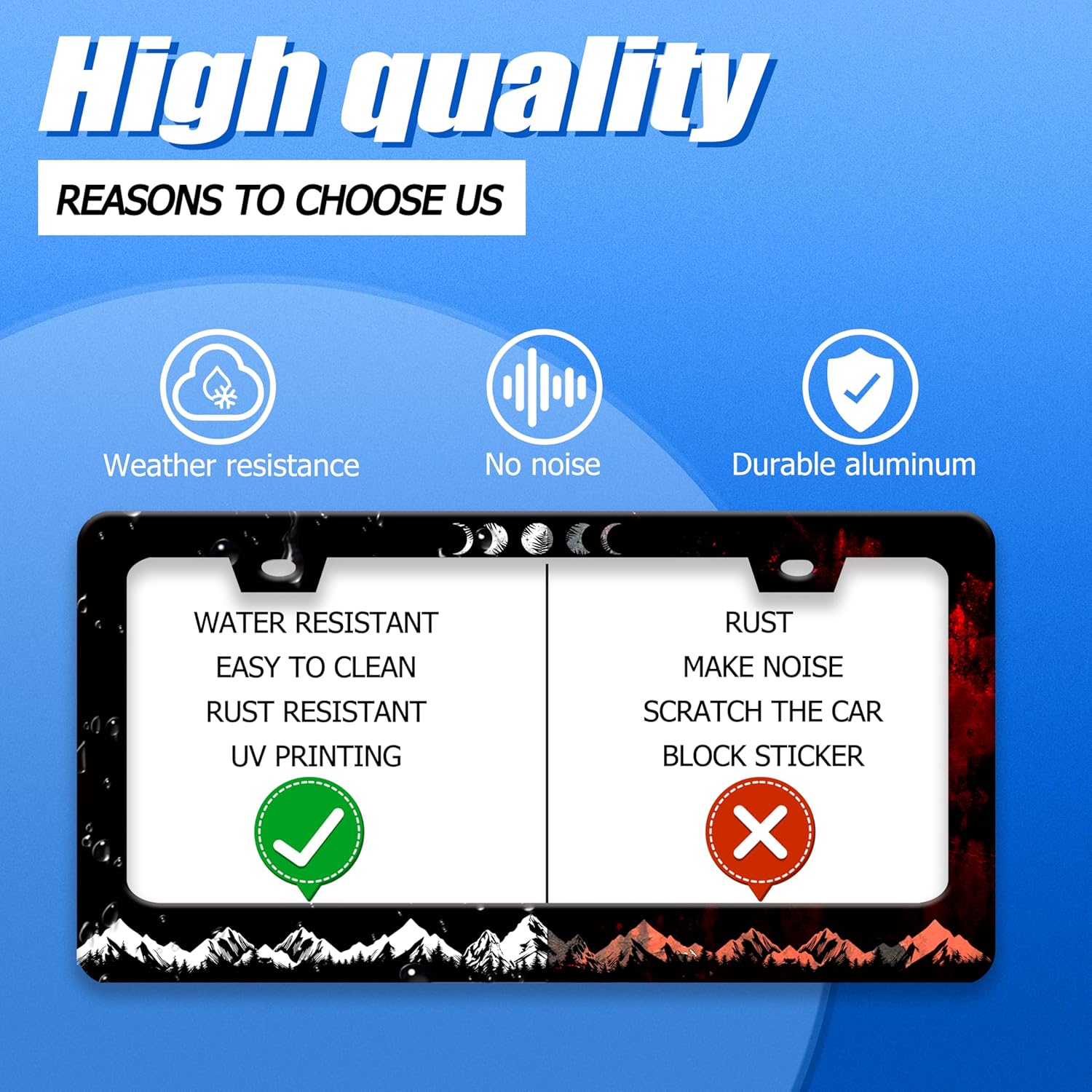 Moon Phase License Plate Frame Mountains Forest License Plate Stainless Steel Funny License Plate Holder for Men Women Universal Black Car Accessories Decoration 12.3" x 6.3"