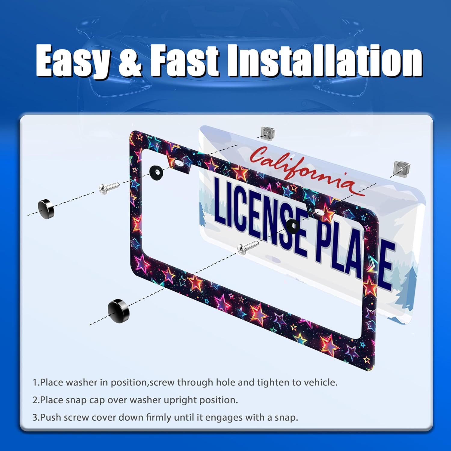 Colorful Stars License Plate Frame Starry Sky License Plate Holder Funny Car Accessories Decoration 12.3" x 6.3" for Men Women