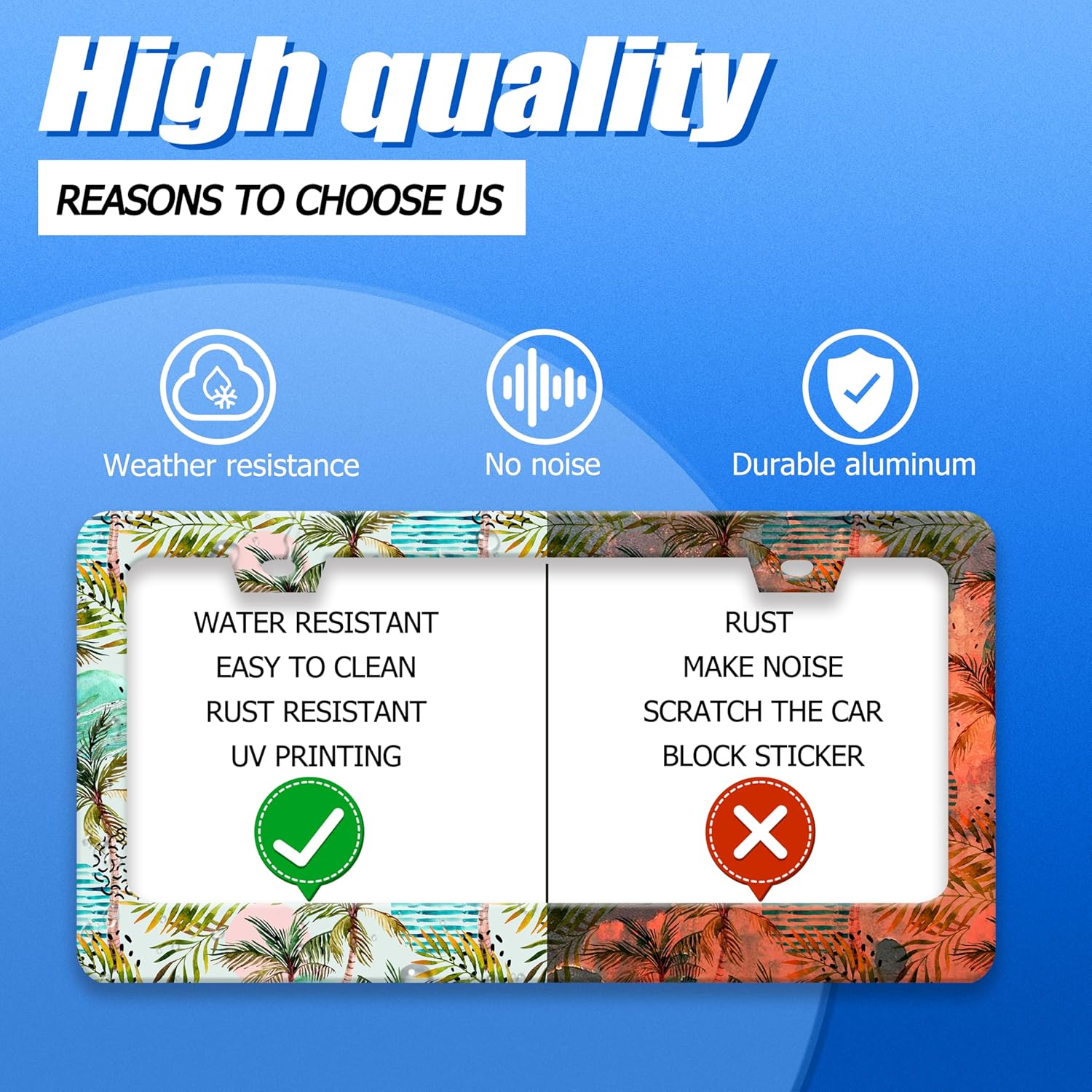 Palm Tree License Plate Frame Colorful Hawaii License Plate Holder Funny Car Accessories Decoration 12.3" x 6.3" for Men Women