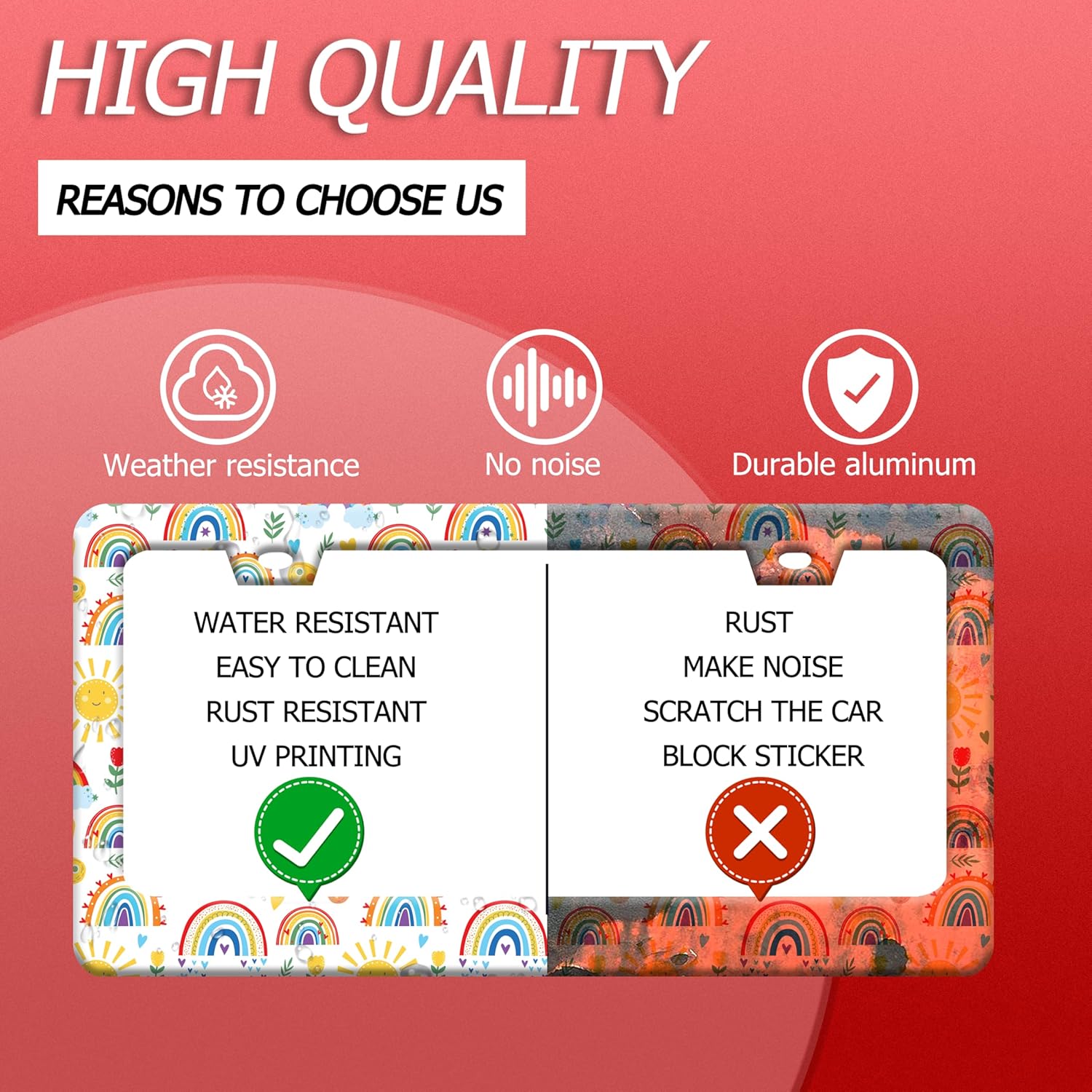 Cute Rainbow License Plate Frame Personalized License Plate Frames Colorful Auto Accessories Bracket Stainless Steel License Plate Holder 6x12 Inch