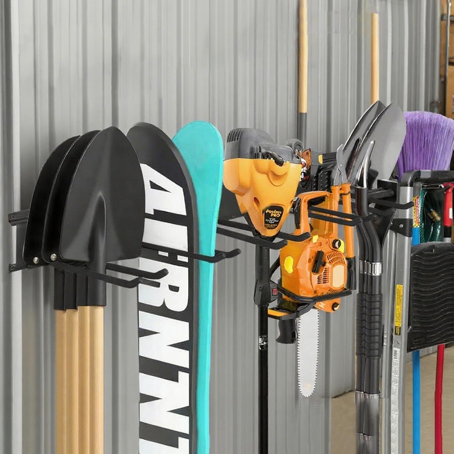 - VERSATILE STORAGE FOR EVERY SPACE:More than just a garage solution, this organizer tackles clutter in gardens, basements, sheds, and utility rooms. Store lawn tools, rakes, extension cords, sports equipment, and household items like folding chairs to transform chaotic spaces into tidy, efficient areas.