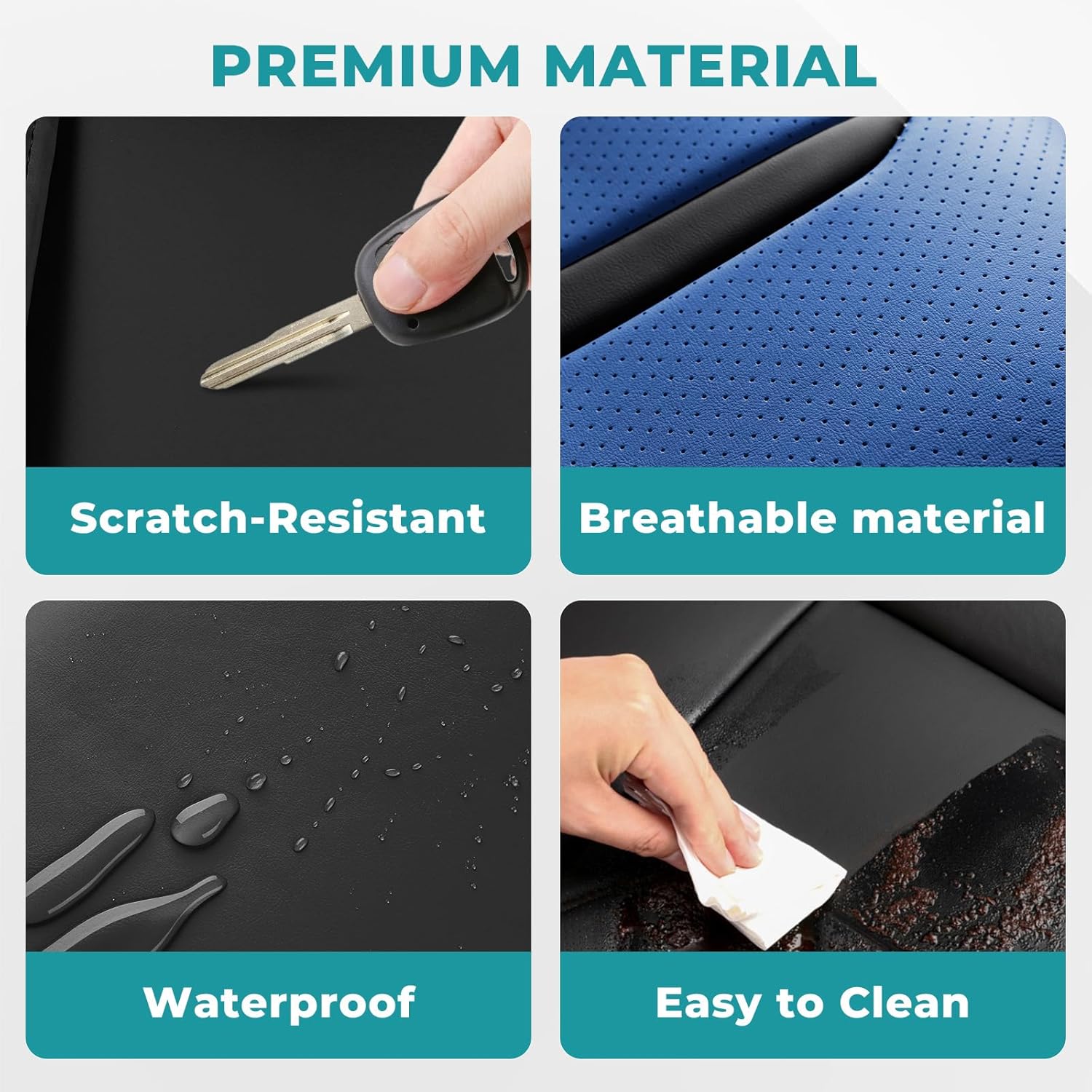 - 【Waterproof & Durable Protection】These waterproof car seat covers feature a four-layer design that resists spills, stains, and scratches. Easy to clean and built to last, they keep your car seats looking new.