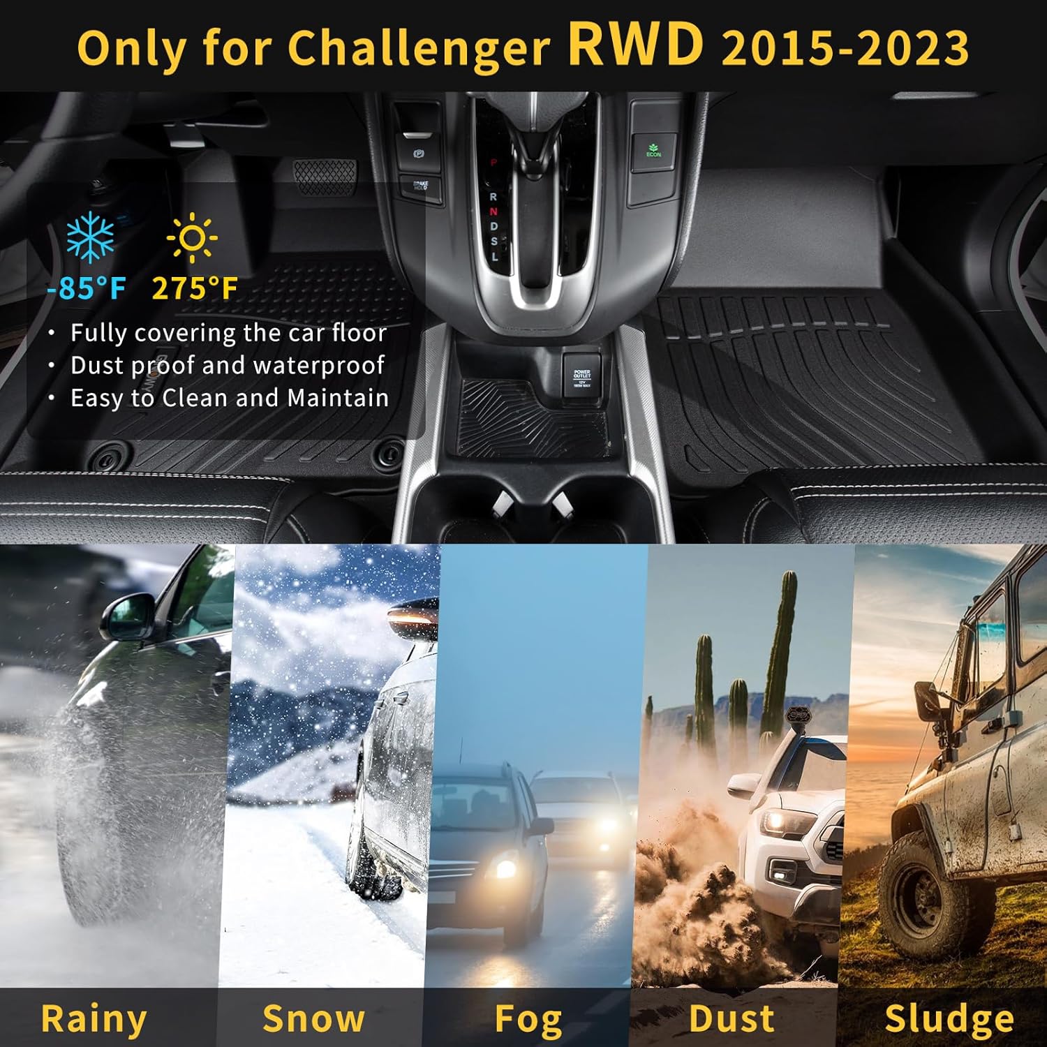 - 【Soft & Durable TPE Rubber】 Floor Mats for Dodge Challenger 2015 TPE material is extremely malleable and durable, non-slip and anti-friction, soft and waterproof.