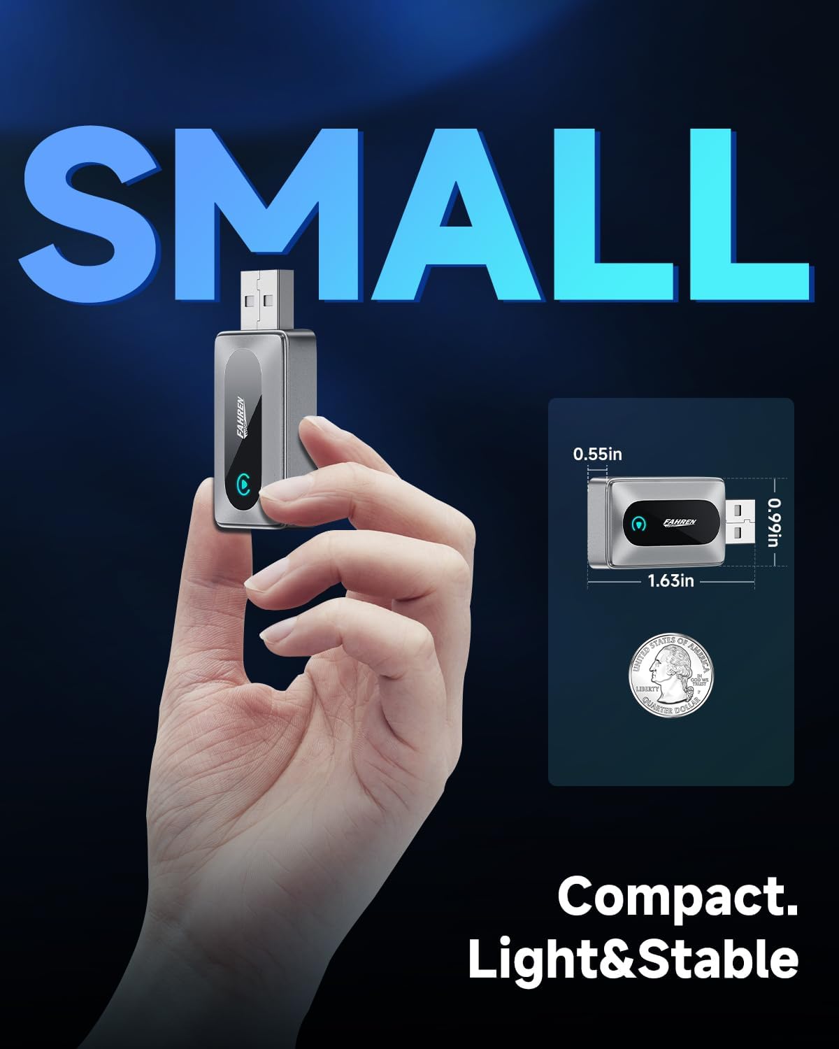 - 【Efficient Cooling & Compact Durability】Engineered for reliability, this wireless Apple CarPlay adapter features an all-metal housing with integrated thermal control technology for superior heat dissipation. The advanced cooling system prevents overheating during extended use while protecting your car's USB ports from heat damage.With its space-saving mini design, it delivers a clutter-free, wire-free driving experience—keeping your car interior neat while ensuring stable, long-lasting performance.