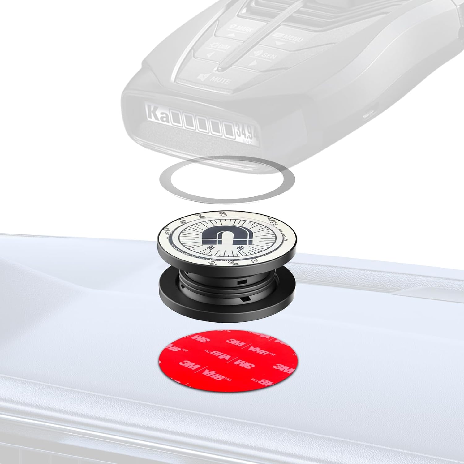 Magnetic Radar Detector Dashboard Mount - Adhesive Holder for Escort,Cobra,Uniden, Valentine One,All Radar Models - Anti-Vibration Stable Fit, Unobstructed View Design - Universal Car Accessory