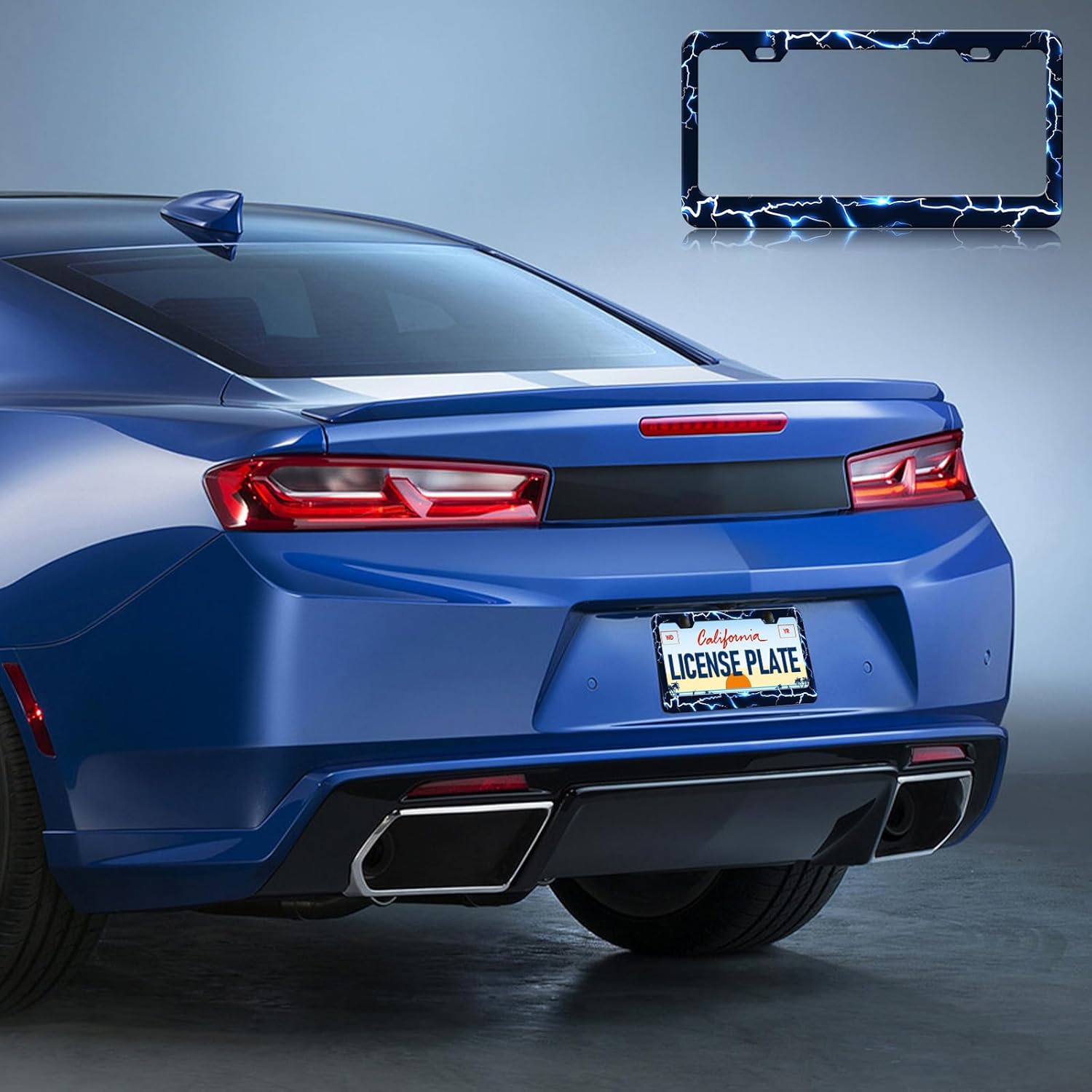 Blue Lightning License Plate Frames - 2 Pack Funny Thunder Stainless Steel License Plate Holder,Rust-Proof Waterproof Car Decorative Tag Frame with Screws Fasteners Caps