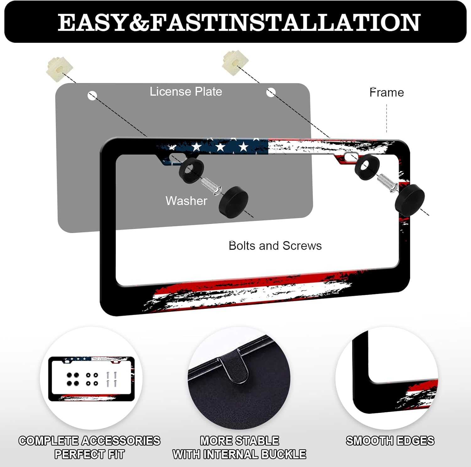 - Easy to Instal: The car license plate frame includes accessories, nuts, anti-theft screws, and comes with installation hardware, including all accessories shown in the figure;The license plate frame is easy to install without any special tools