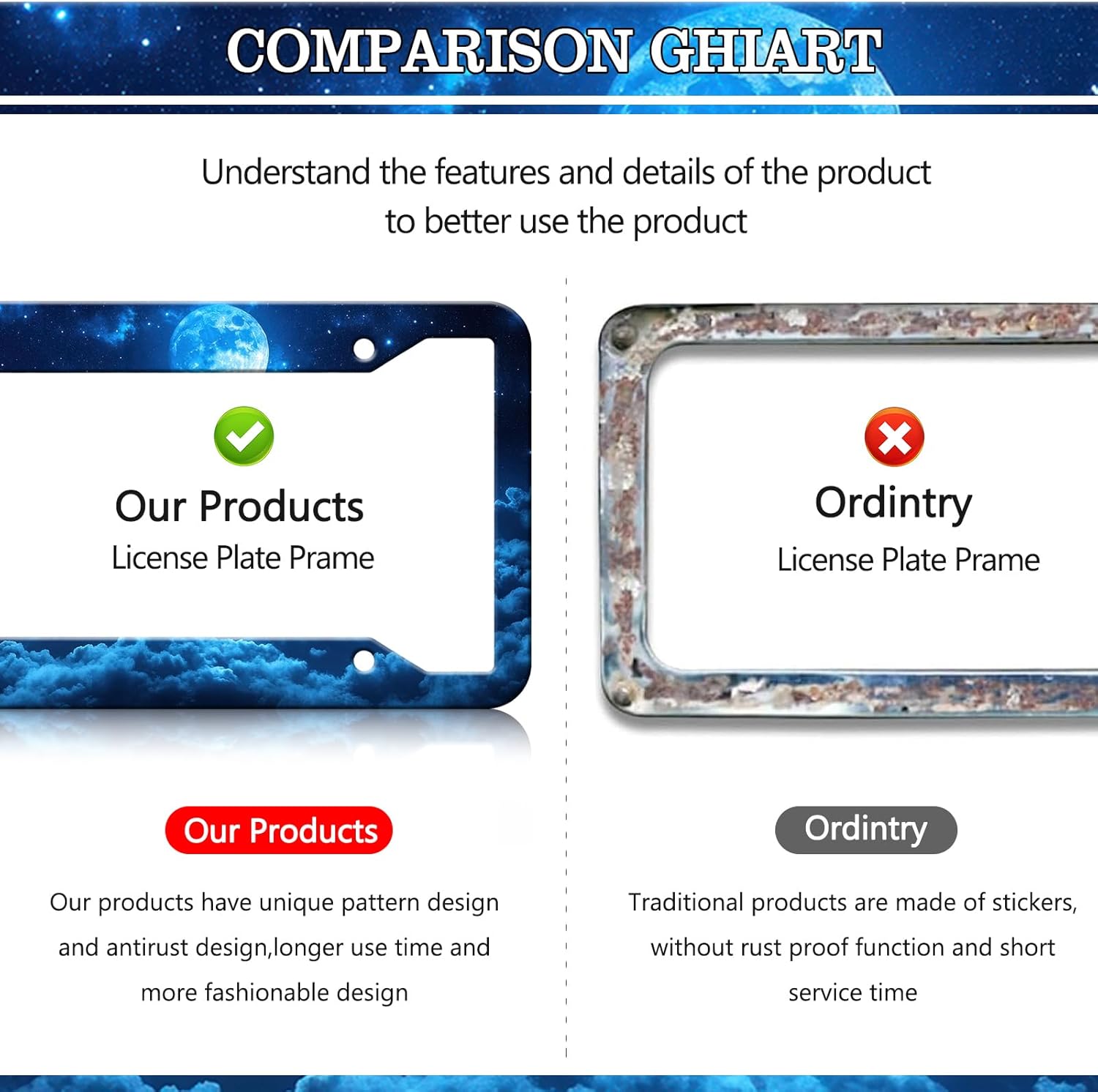 Moon Galaxy Starry Sky License Plate Frames - 2 Pack Night Sky License Plate Holder,Stainless Steel Rust-Proof Waterproof Car Decorative Tag Frame with Screws Fasteners Caps