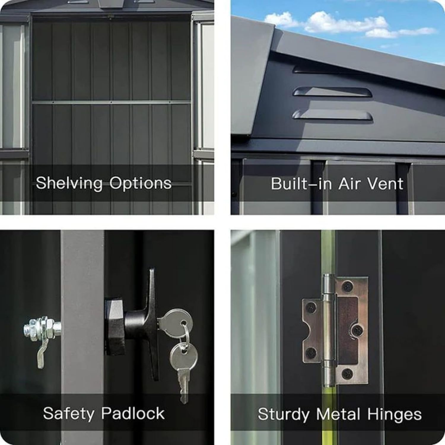 - ๐ฌ๏ธ Ventilation and UV Protection - Equipped with vents for increased lighting and airflow, this tool shed maintains optimal conditions. Rust-resistant and UV-resistant galvanized steel ensures resilience against all weather conditions, keeping your storage clear and protected.